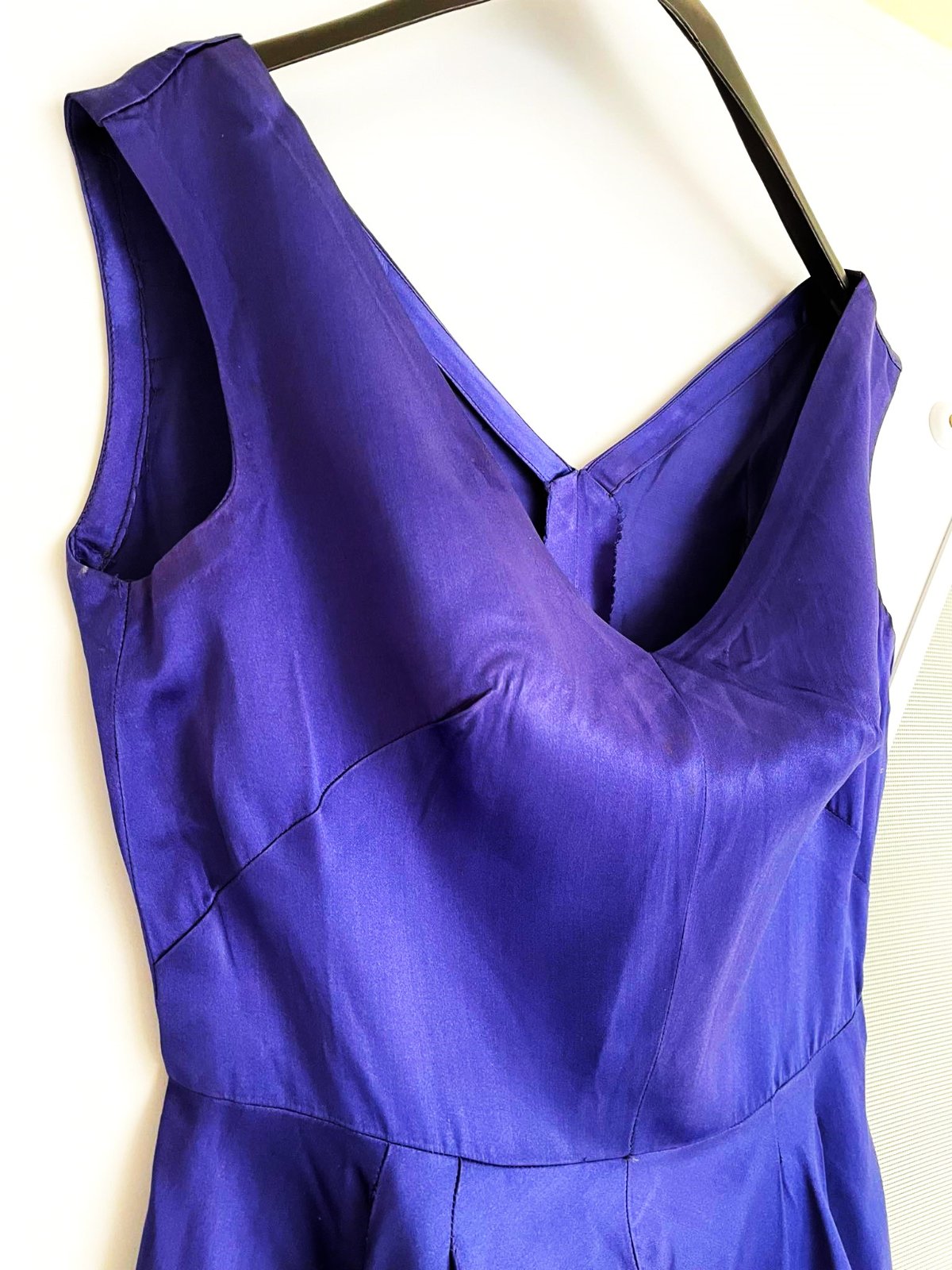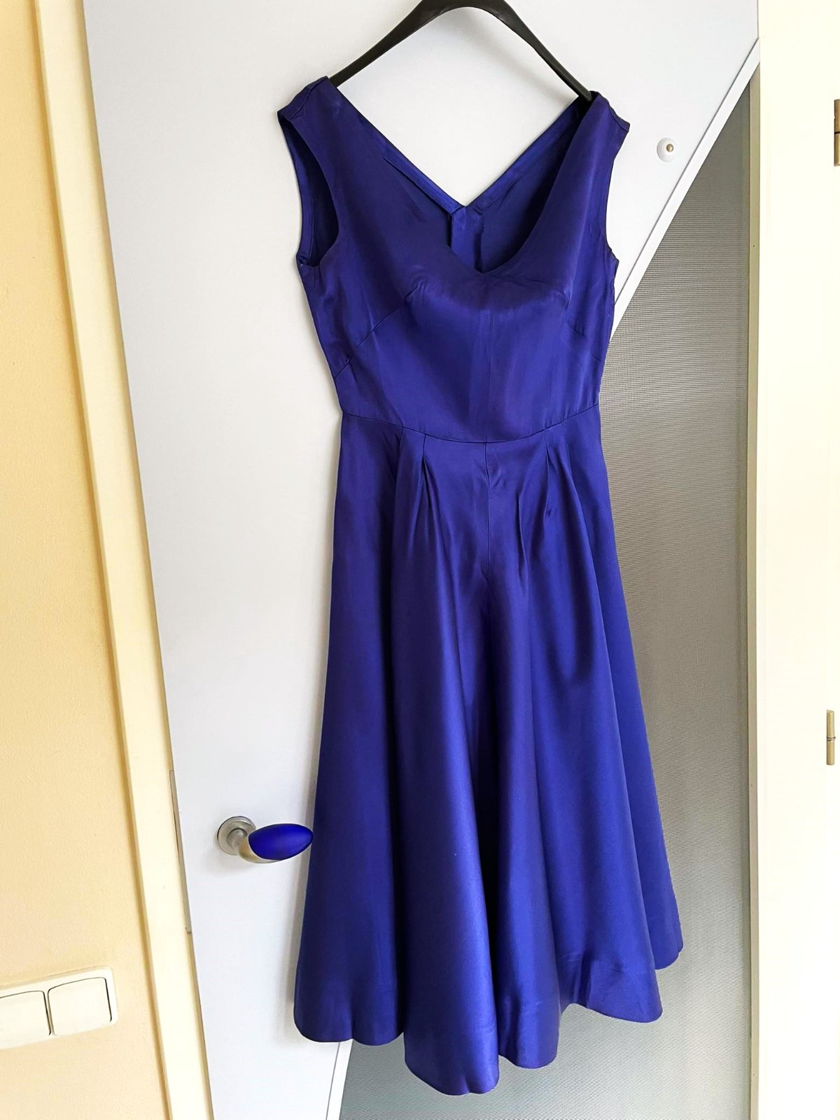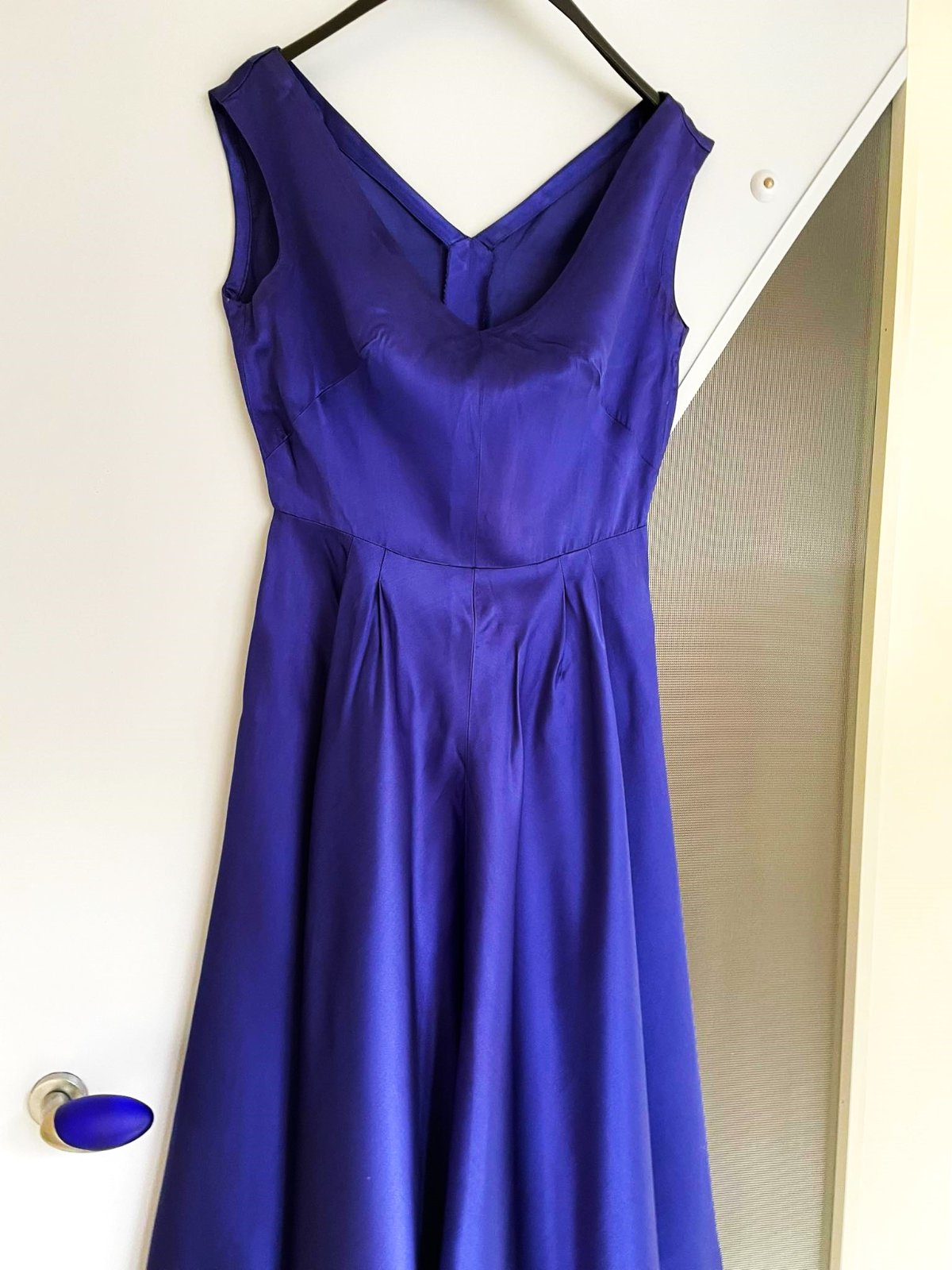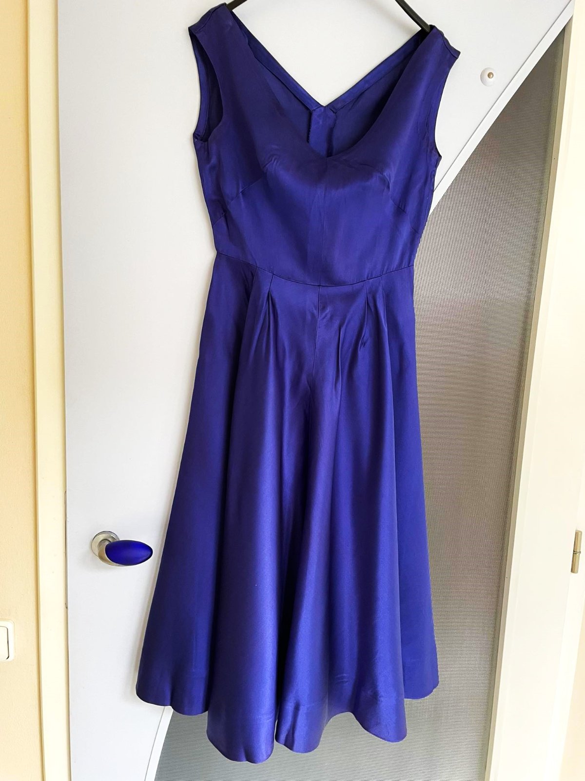 krásne saténové šaty šité na zakázku,jednoduché ale krásne,pekne sedia na postave, sú vytvarované,sukne pekne padá,sú cca po kolená, zaujímavá nevšedná modro fialová lesklá farba,na požiadanie premeriam