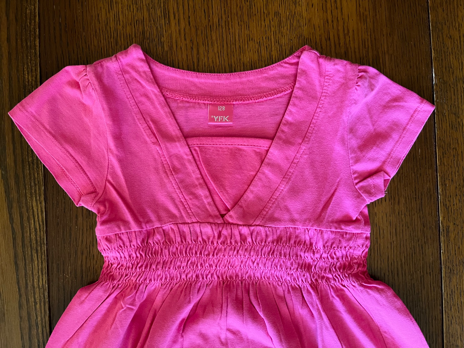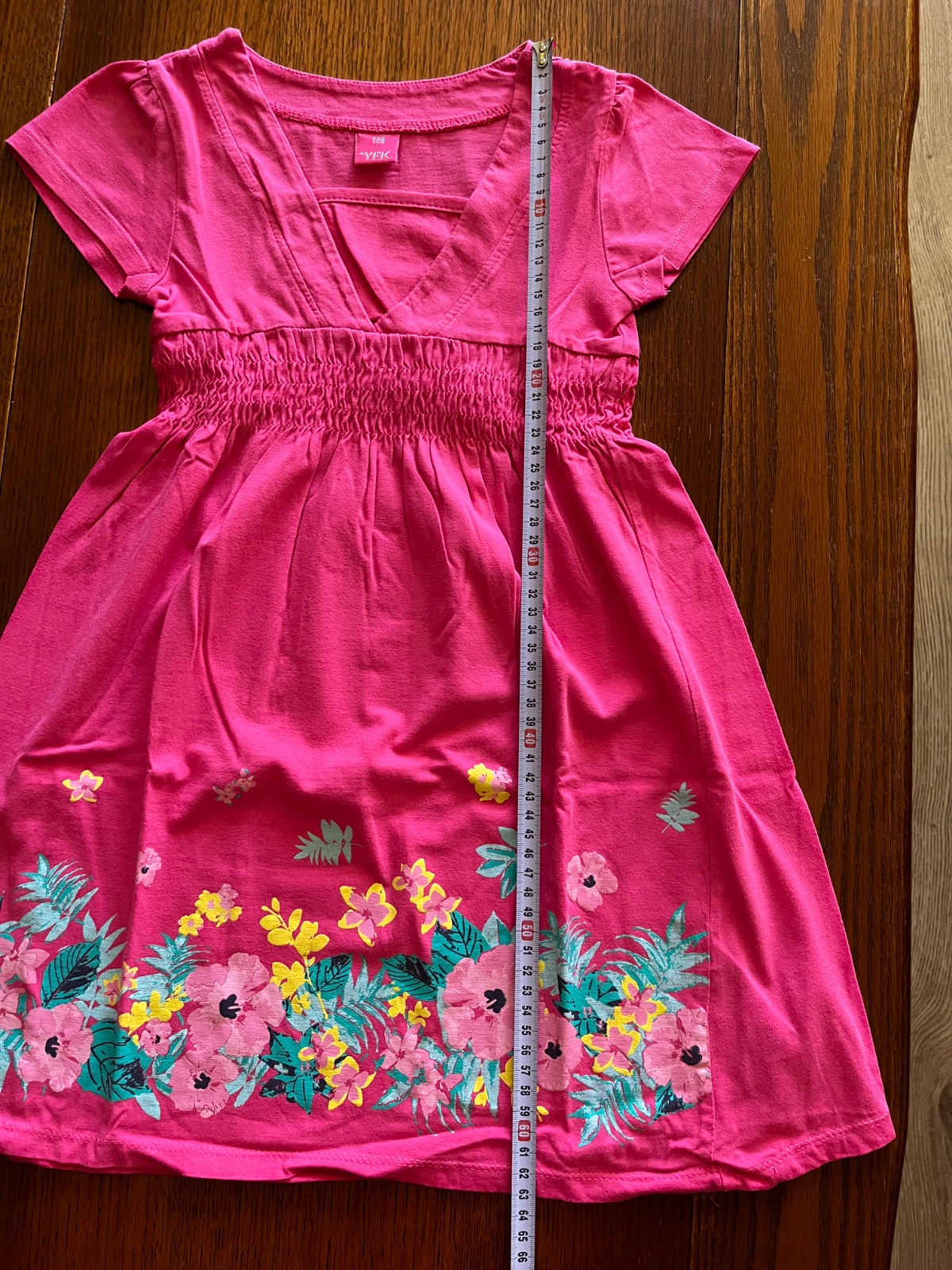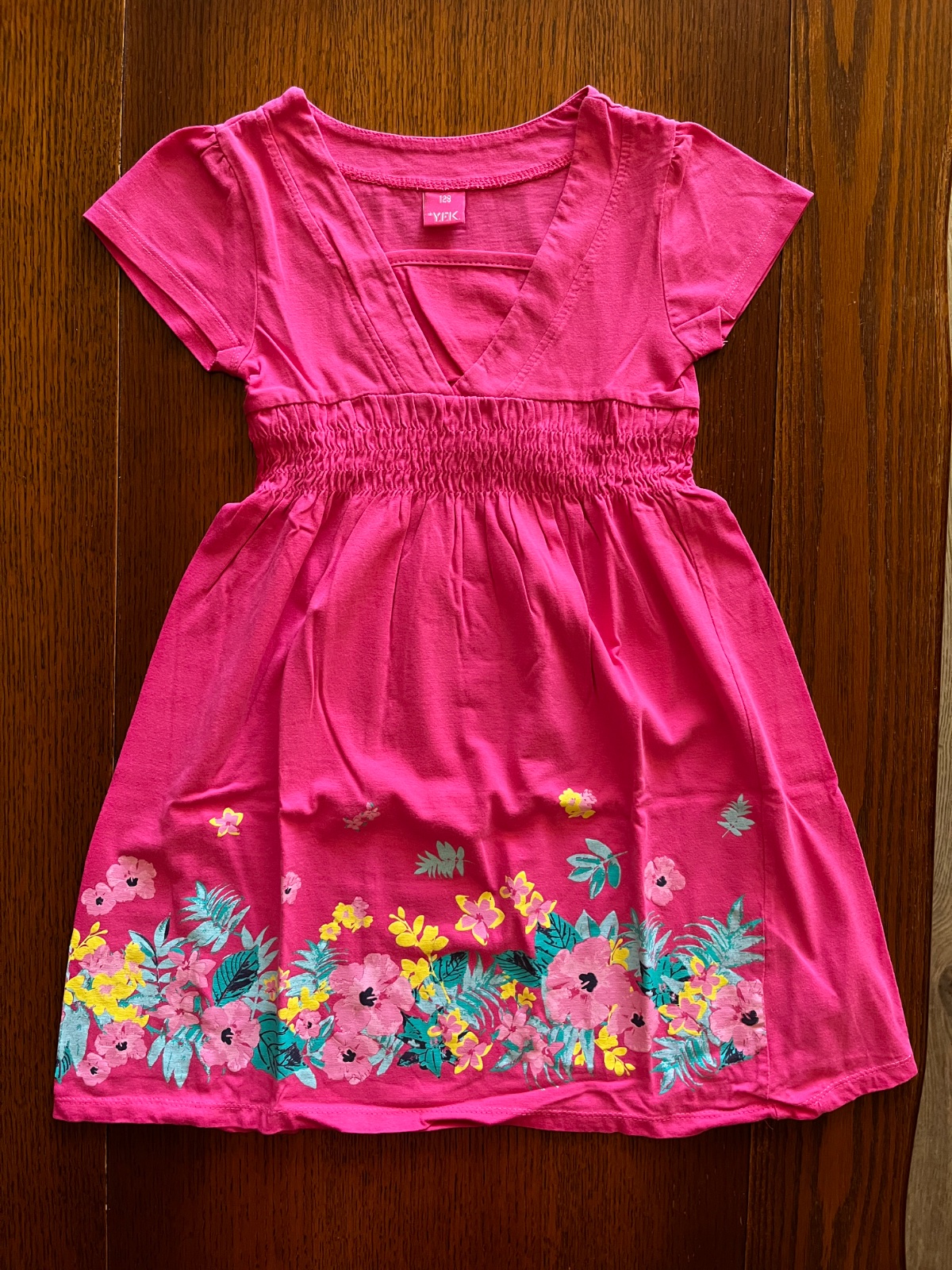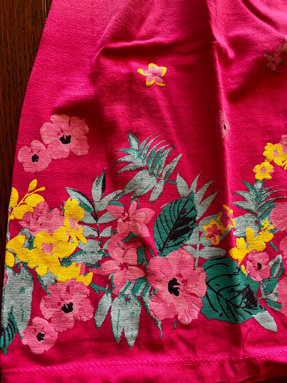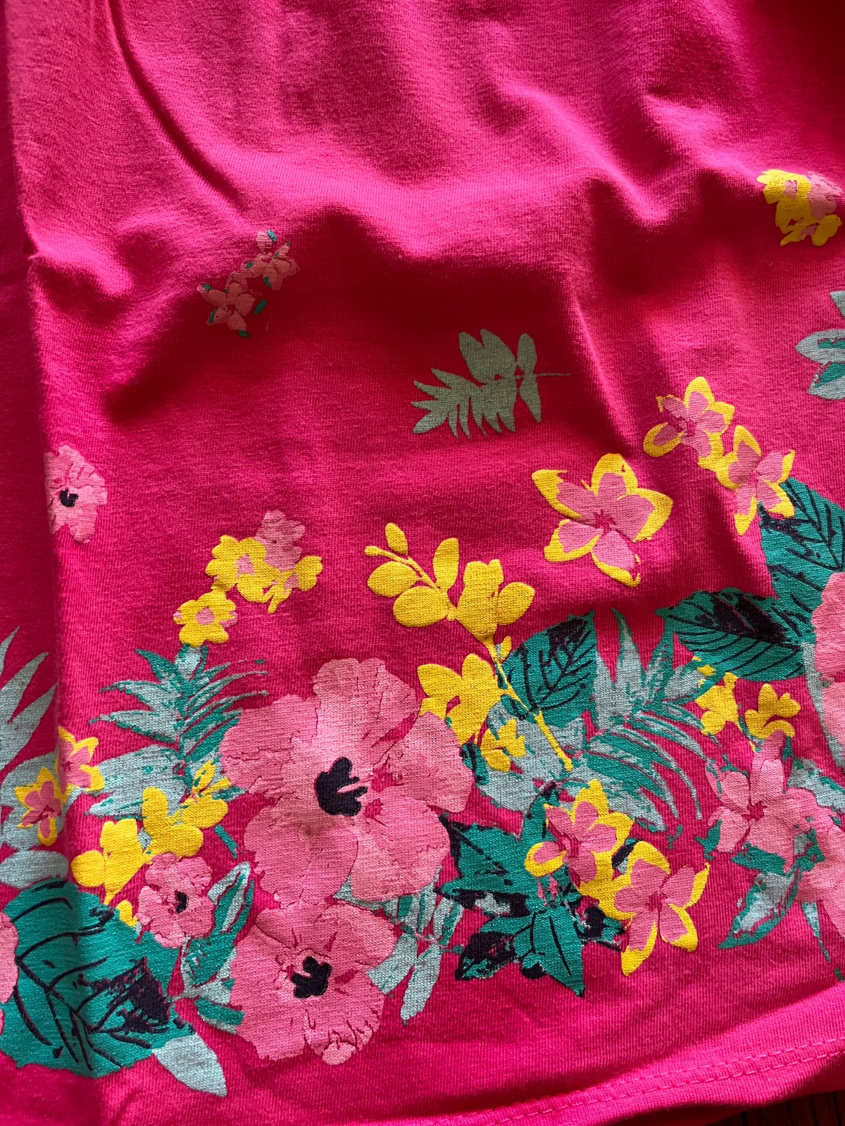 Krásne letné šatičky v žiarivej magenta farbe s výraznými kontrastnými kvetmi na sukničke.