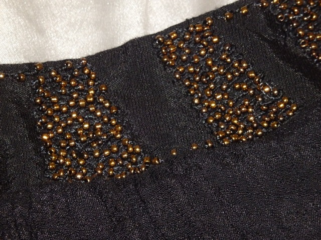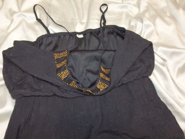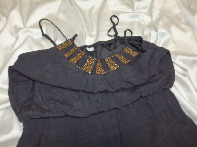 Kvalitné letné šaty čiernej farby so zdobeným výstrihom, v páse gumka, materiál 100% polyester, podšité, super stav.