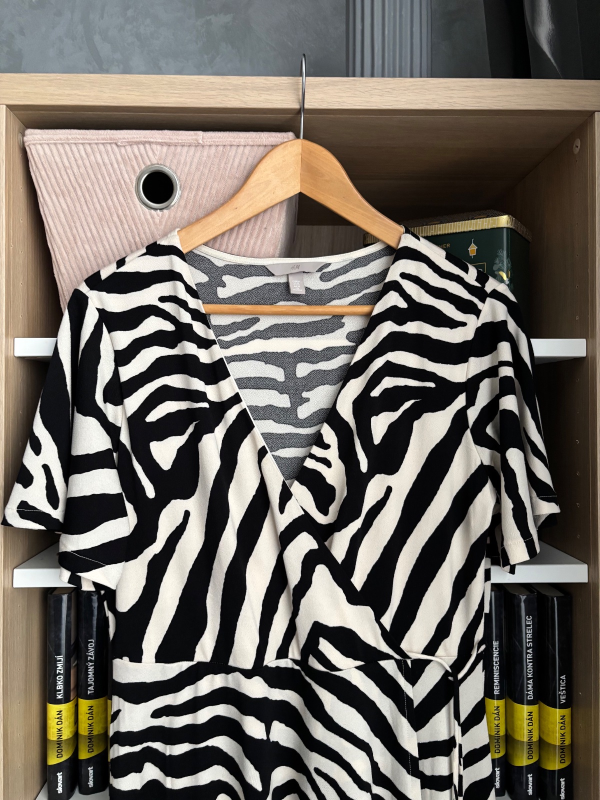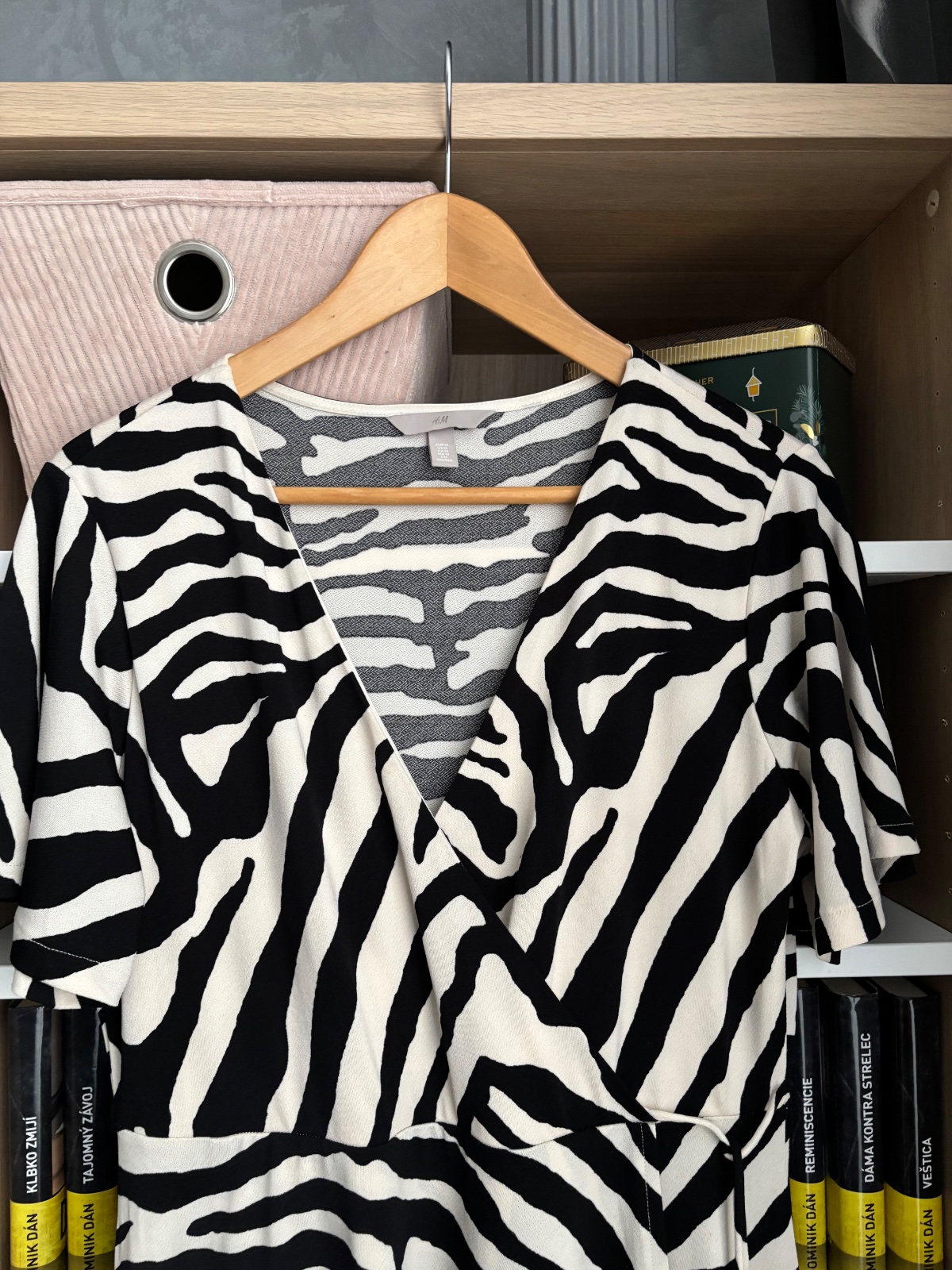 Dámske smotanové / krémové ornamentové elegantné šaty značky H&M. Veľkosť sedí na M - 38 (veľkostný štítok je odstrihnutý). Od pazuchy k pazuche je spredu sirka v pokoji 44cm a natiahne sa az na 47...