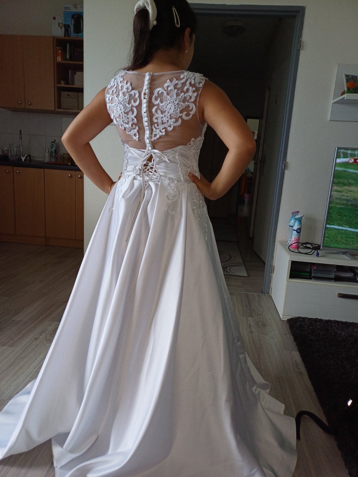 Predám šaty na 1.sv.prijimanie sú kúpené v svadobnom salóne a sú prerobené z klasických svadobných šiat.Sú na vyššie dievčatko sú na vel.158, 164, xs ,s . Dlžka sa da upravit u krajčírky.Aj my sme upravovali dĺžku. Vzadu majú krásnu čipku na chrbáte. Sú mohutné, pevne,krásne tvaruju,maju skryté vačky, spodnička je viac vrstvena a je na pevno!!! Čo je výhoda a žiadny kruh tam nemusí byť ☝️! Každý nám ich obdivoval a zožali veľký úspech. A hlavne dcéra sa v nich cítila ako princezná ❤️ Pri rýchlom jednaní sa dá dohodnúť na cene.