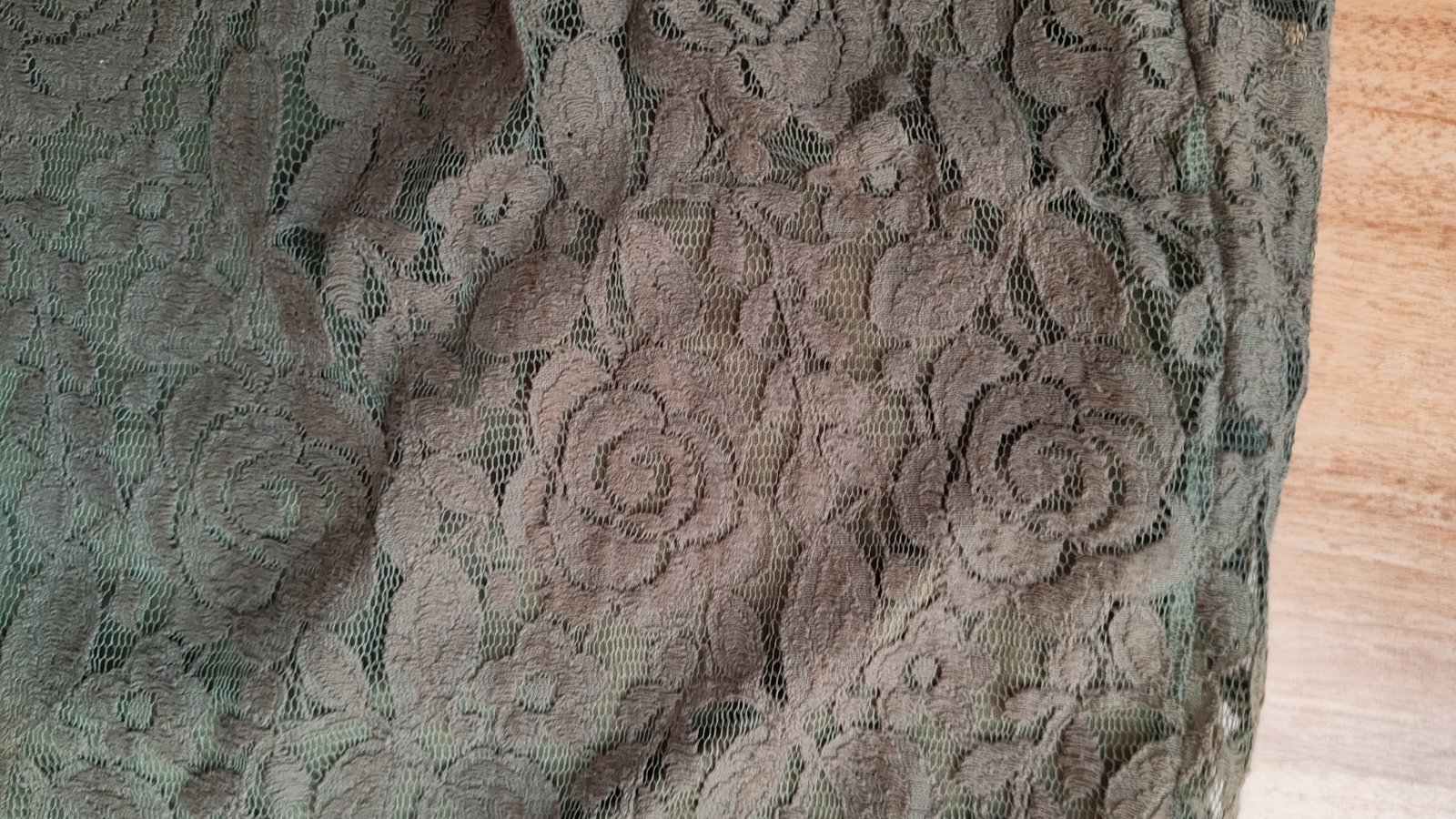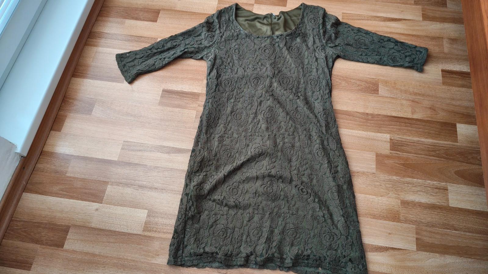 Olivové/ khaki šaty s čipkou a opáskom💚, 2 x oblečené, ako nové, vo veľkosti M.😊 •dĺžka šiat je 86 cm