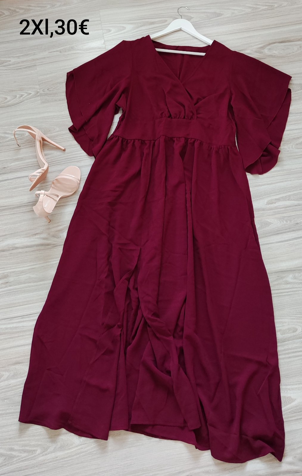 Nádherné šaty objednané z Temu, ale nakoniec som si kúpila iné. Veľkosť je XXL - zodpovedá našej 46. Rozmery sú uvedené na jednej z fotiek. Šaty majú vpredu pod pásom malý fliacik, neskúšala som h...