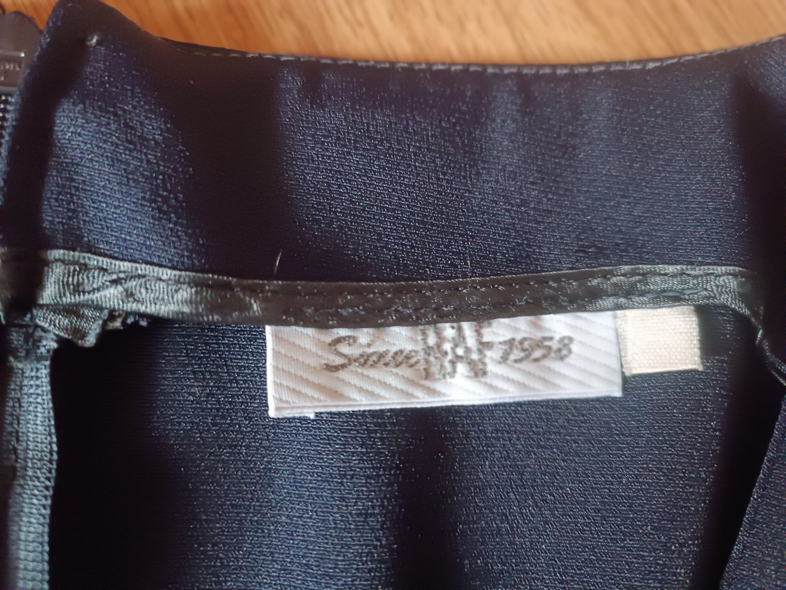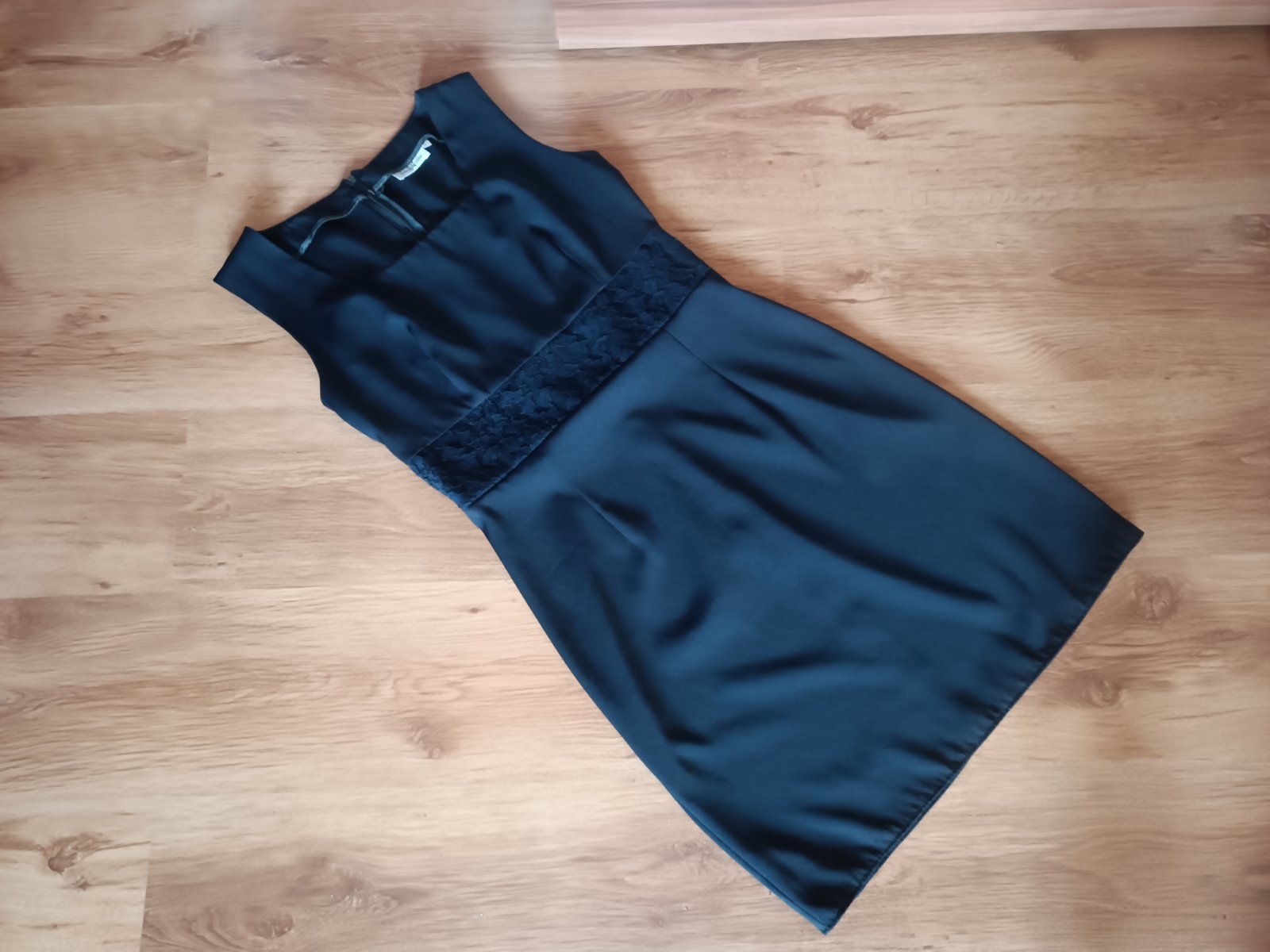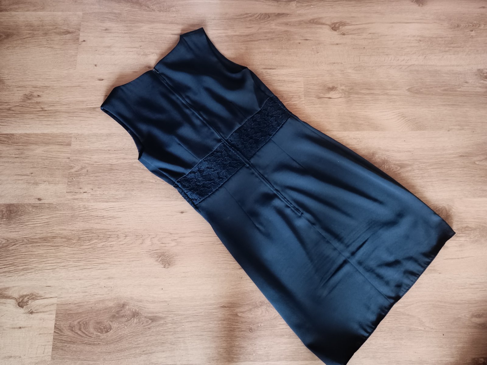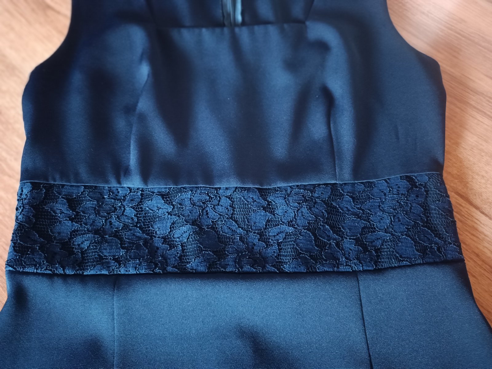 Super stav, bez poškodení, nepodšité, v časti pása krajka (nepresvitá), farba tmavomodrá, zapînajú sa vzadu na zips, symbolická cena