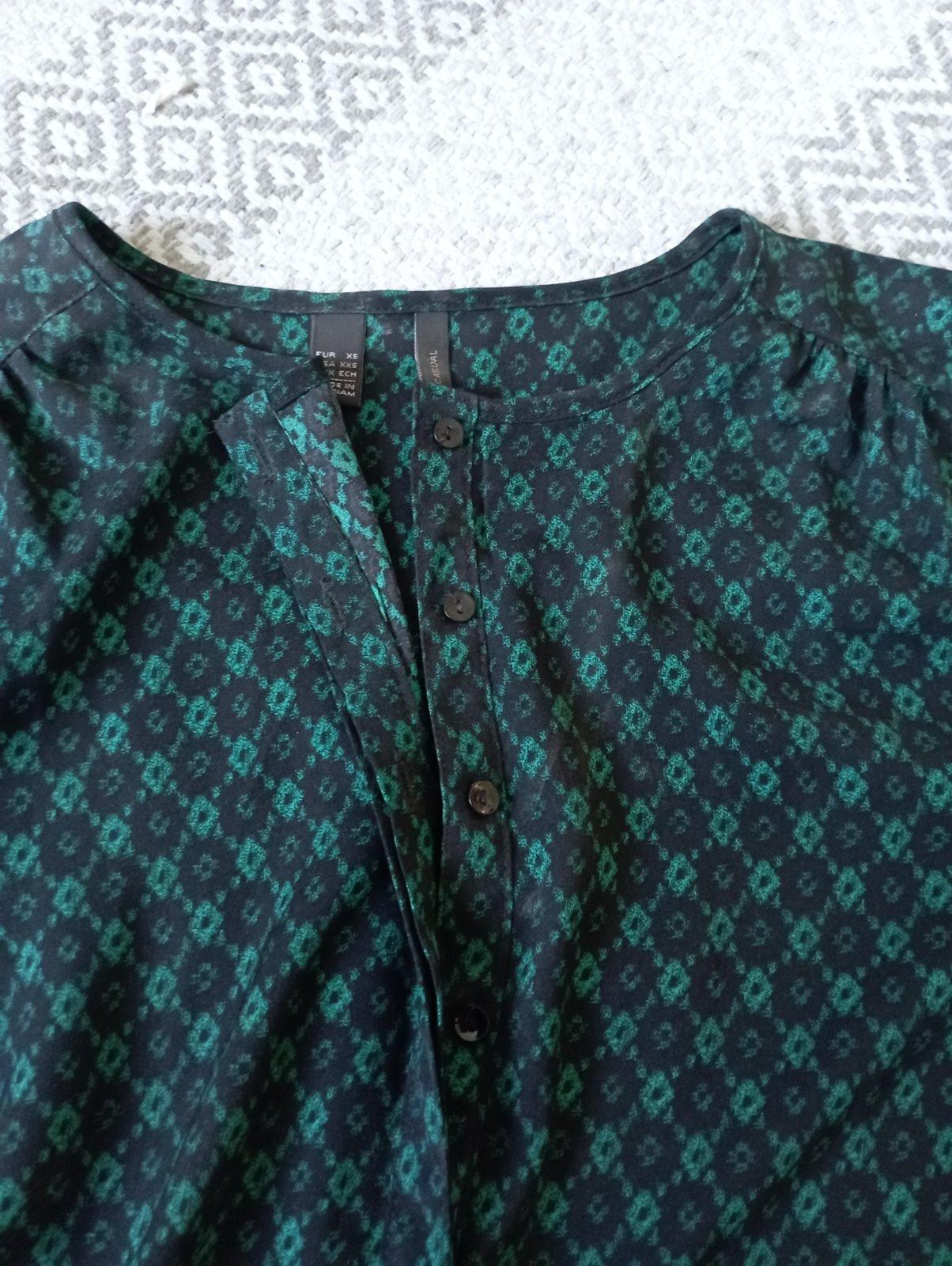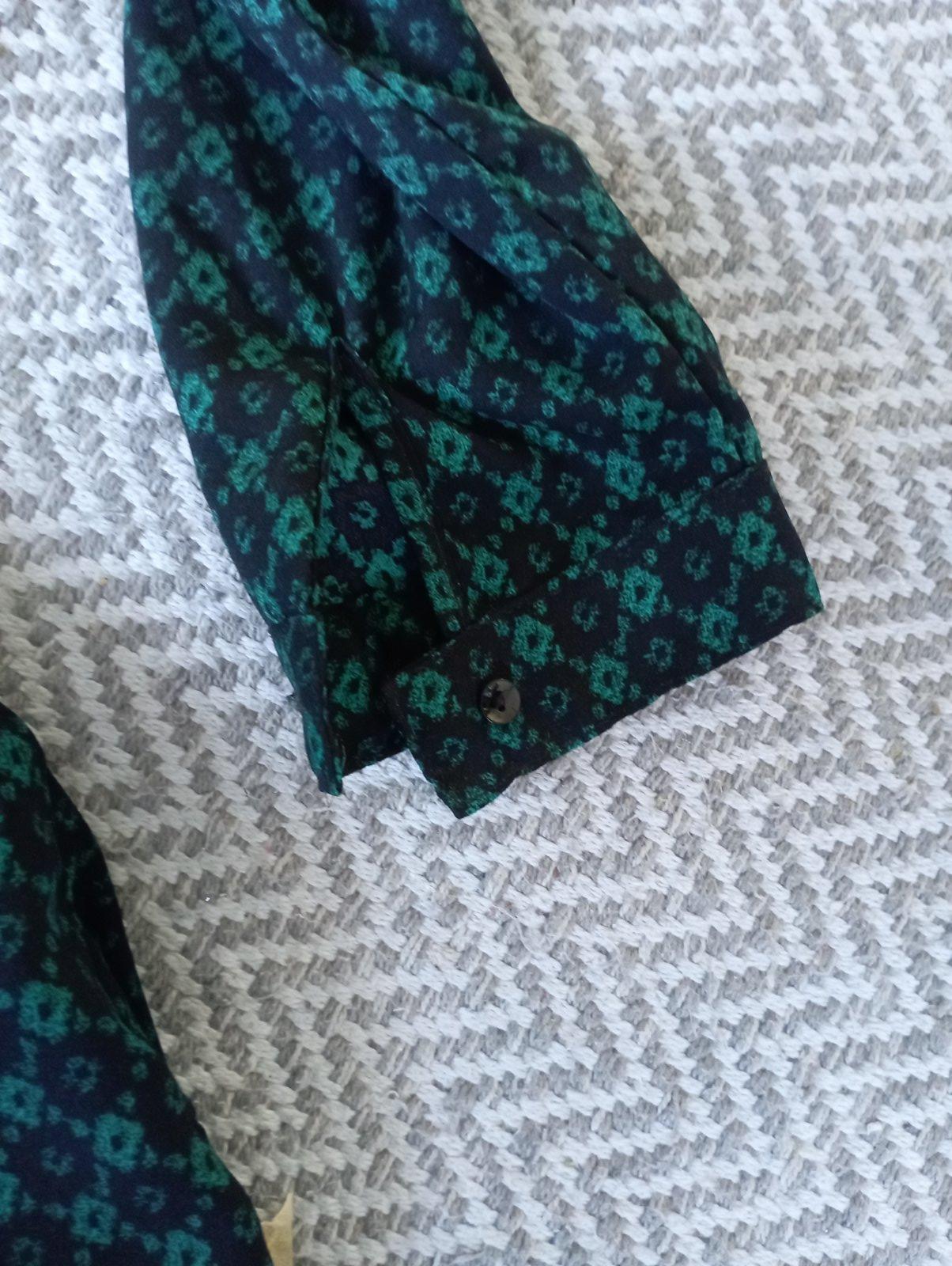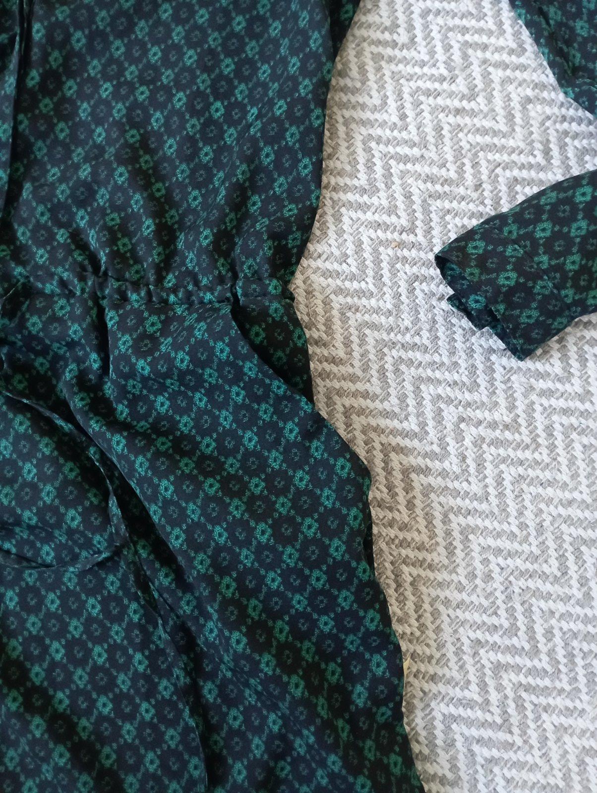 Dámske šaty s vreckami, v páse šnúrka, zapínanie ku krku na gombíky, málo nosené, aktuálne sa do nich už nezmestim. Materiál 97 % polyester, 3 % elastan, Dĺžka vpredu 77 cm, dĺžka vzadu 85 cm, šírka pod pazuchami 42 cm, šírka v páse 36 cm