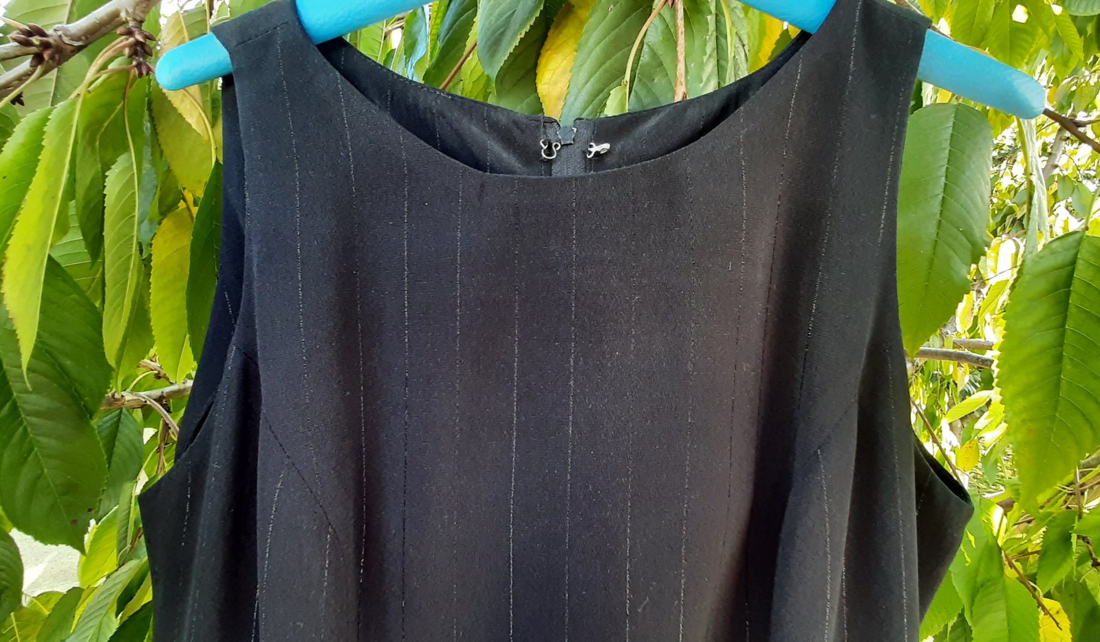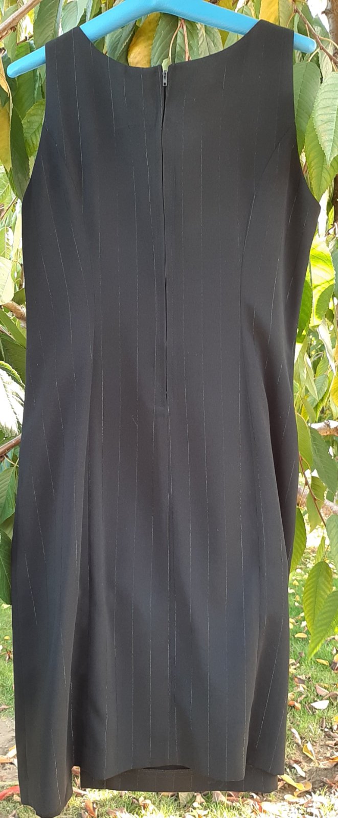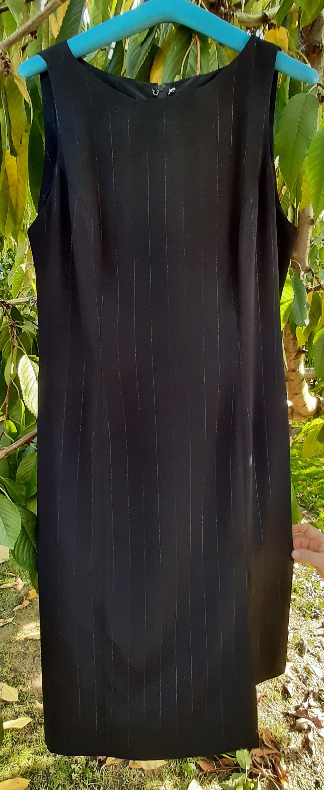 Predam svokrine saty velkost 44. Oblecene par krat, vyborny stav. Cierne s jemnymi zvislymi ciarkami.