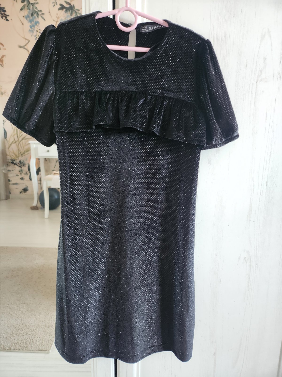Zamatové lesklé šaty sú v top stave,kombinácia čiernej a striebornej lesklej farby. Len 2x oblečené.