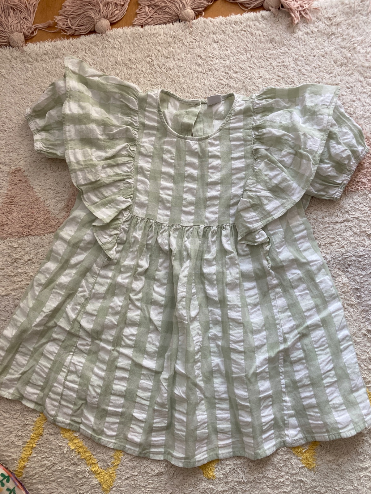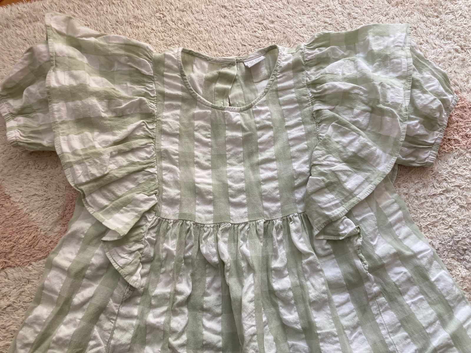 Zelene kárované majú voľnú strih, na ramenách efektne volany. Materiál je ľahký a vzdušný. 10e