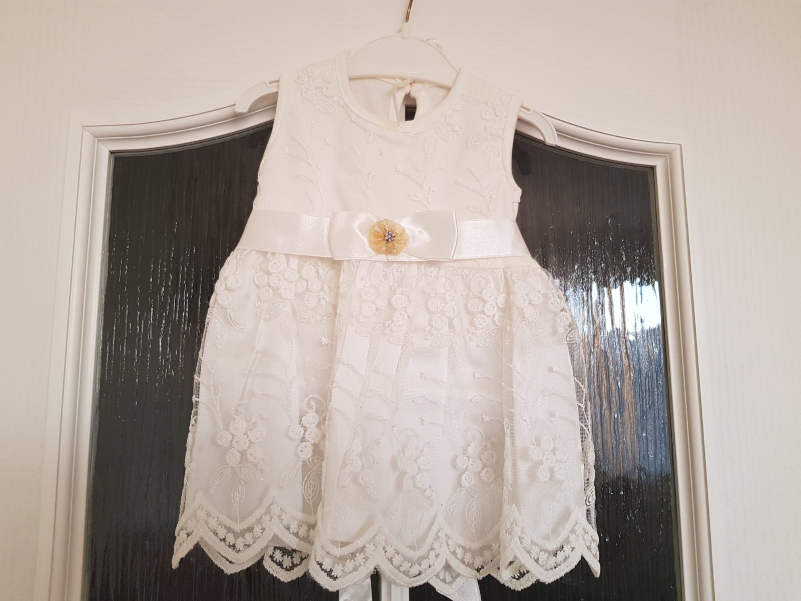 Krásne doma šité šatočky vhodné na slávnostnú príležitosť (krst, svadba, oslava atc.). Veľkosť 68. Šaty boli 2x použité pri krste, sú bez poškodení, ako nové.