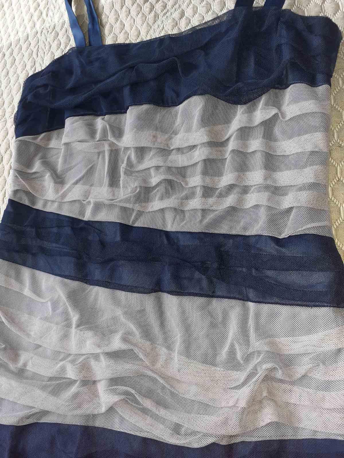 Modro čierne pásikové šaty bez ramienok. Velkost S.
