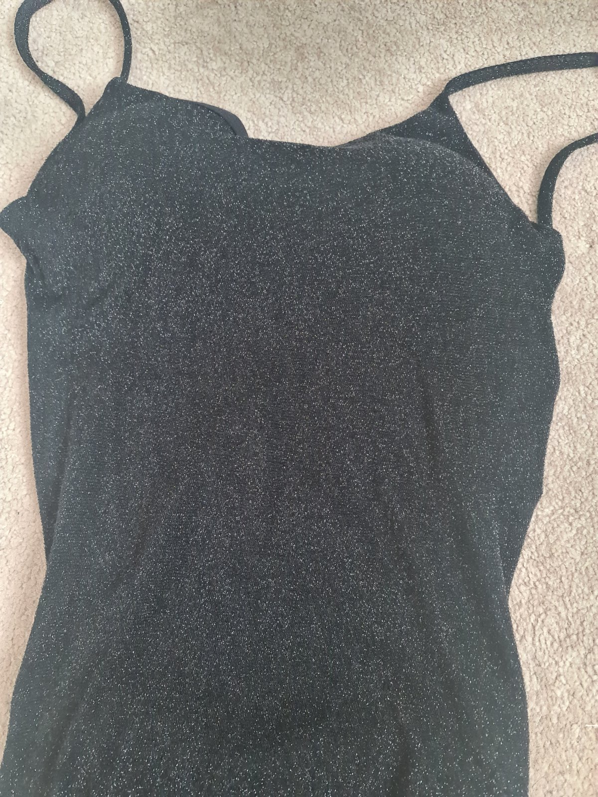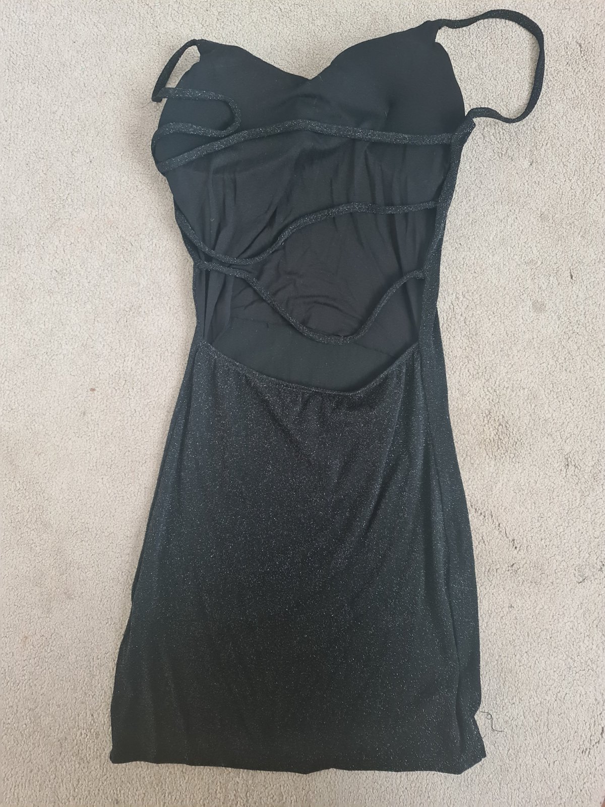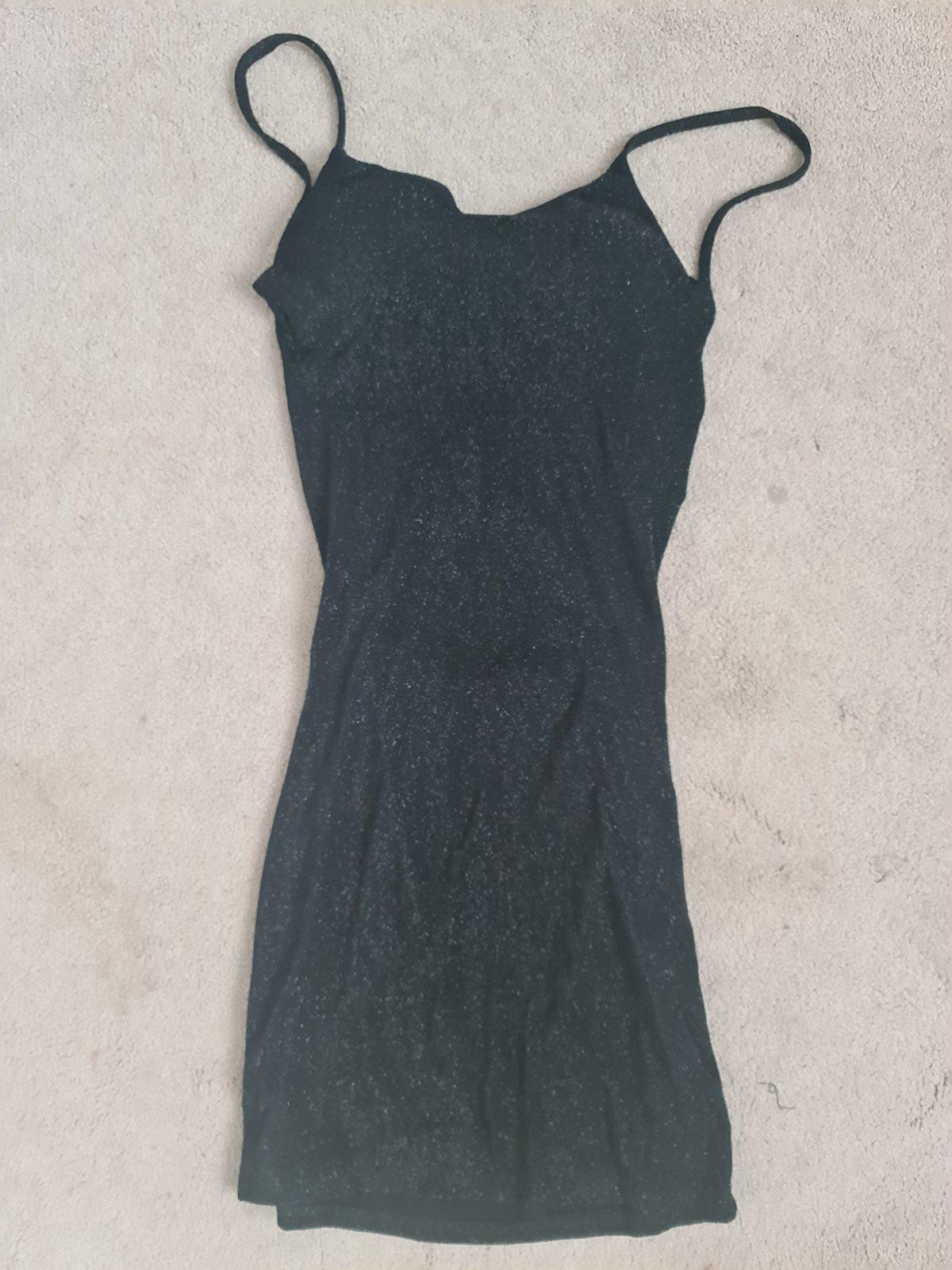 Úplne nové, trblietkavé s holým chrbátom. Za mňa skôr XS/S. Elastické.