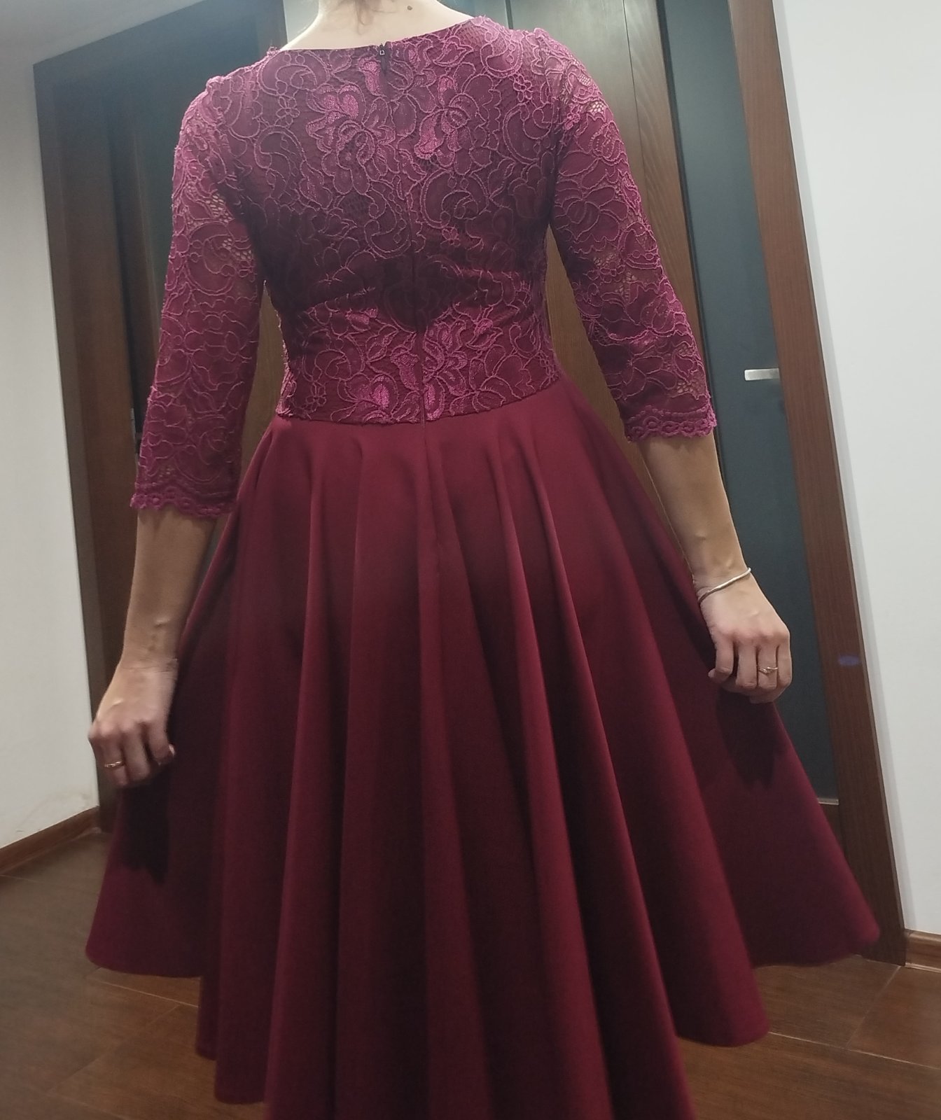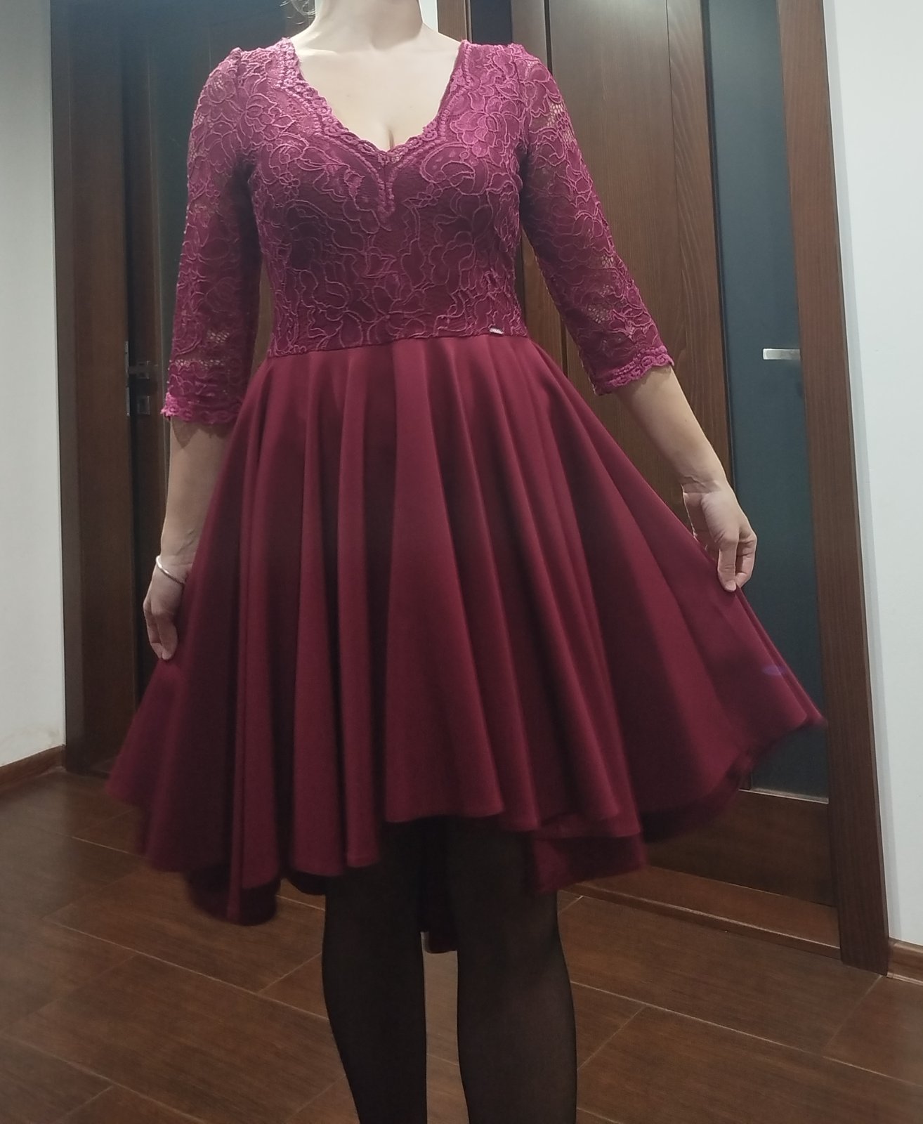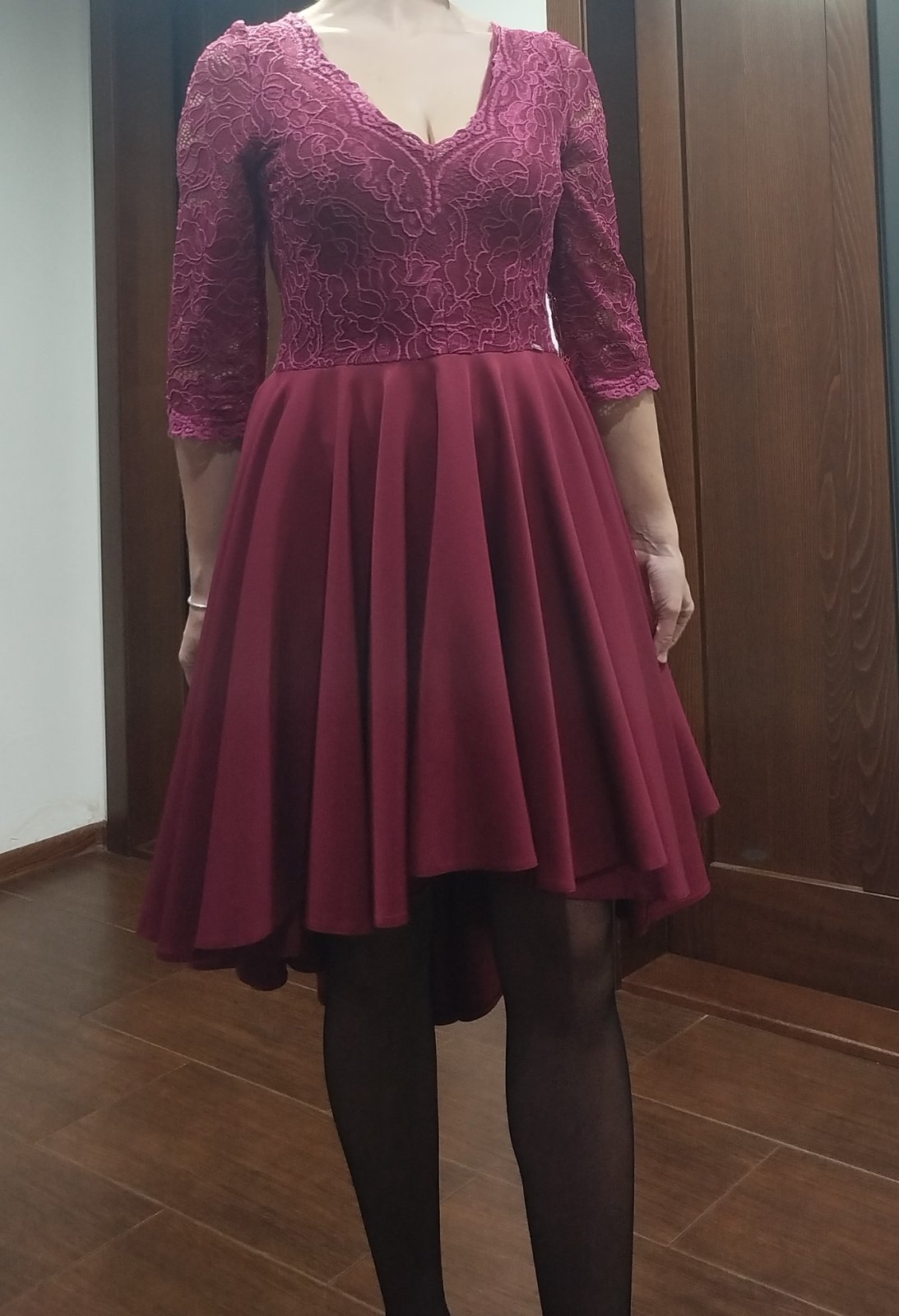 Predám krásne asymetrické spoločenské šaty značky Numoco veľkosť L farba Burgundy.