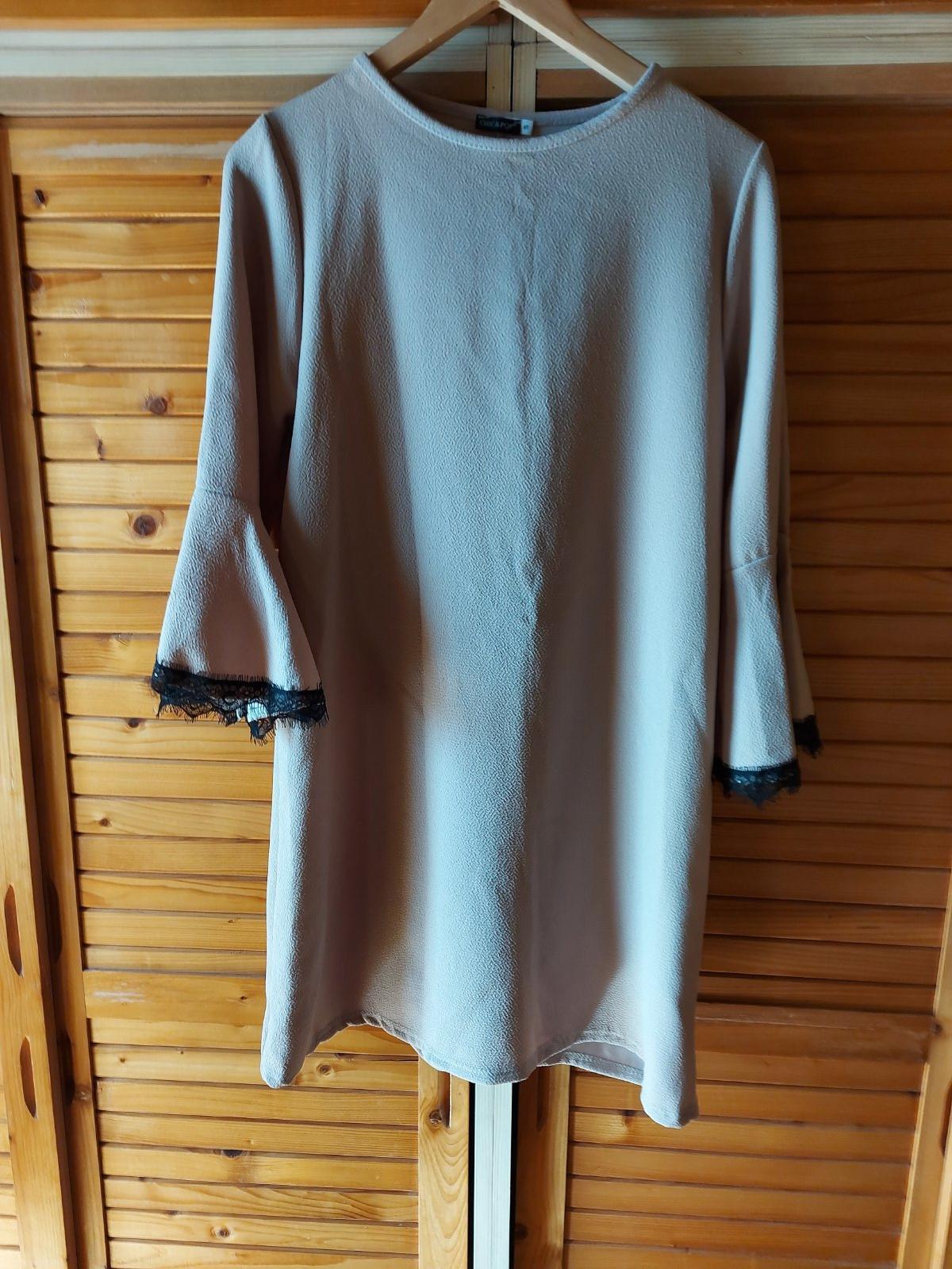 Šaty CHIC&POP, voľnejší strih, S, M, š. pod pazuchami - 47, celková dĺžka - 82,5, dĺžka rukáva - 43+čipka-3,5, rukáv je rozšírený-viď foto, materiál je mierne elastický