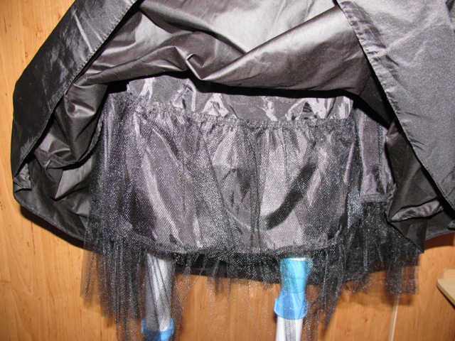 čierne, pevný širší pás s korálkami a flitrami (1 korálku treba prišiť, visí z jednej strany), tylová spodnička zo zdvojeného tylu - robí sukňu širšou, zapínanie na zips, pri prsiach miery len približné - je to tam nariasené, zle sa to meria, oblečené 1x, v perfektnom stave