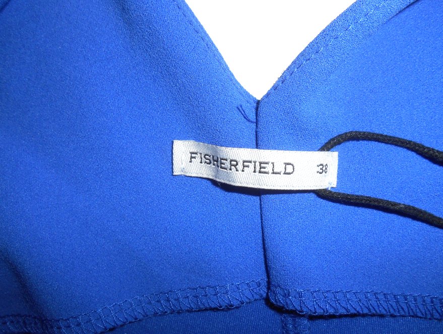 dobrý nosený stav, materiál: 95% polyester, 5% elastan, farba modrá, V-výstrihy, nazberaný predný diel, 45 cm rázporok na zadnom diely