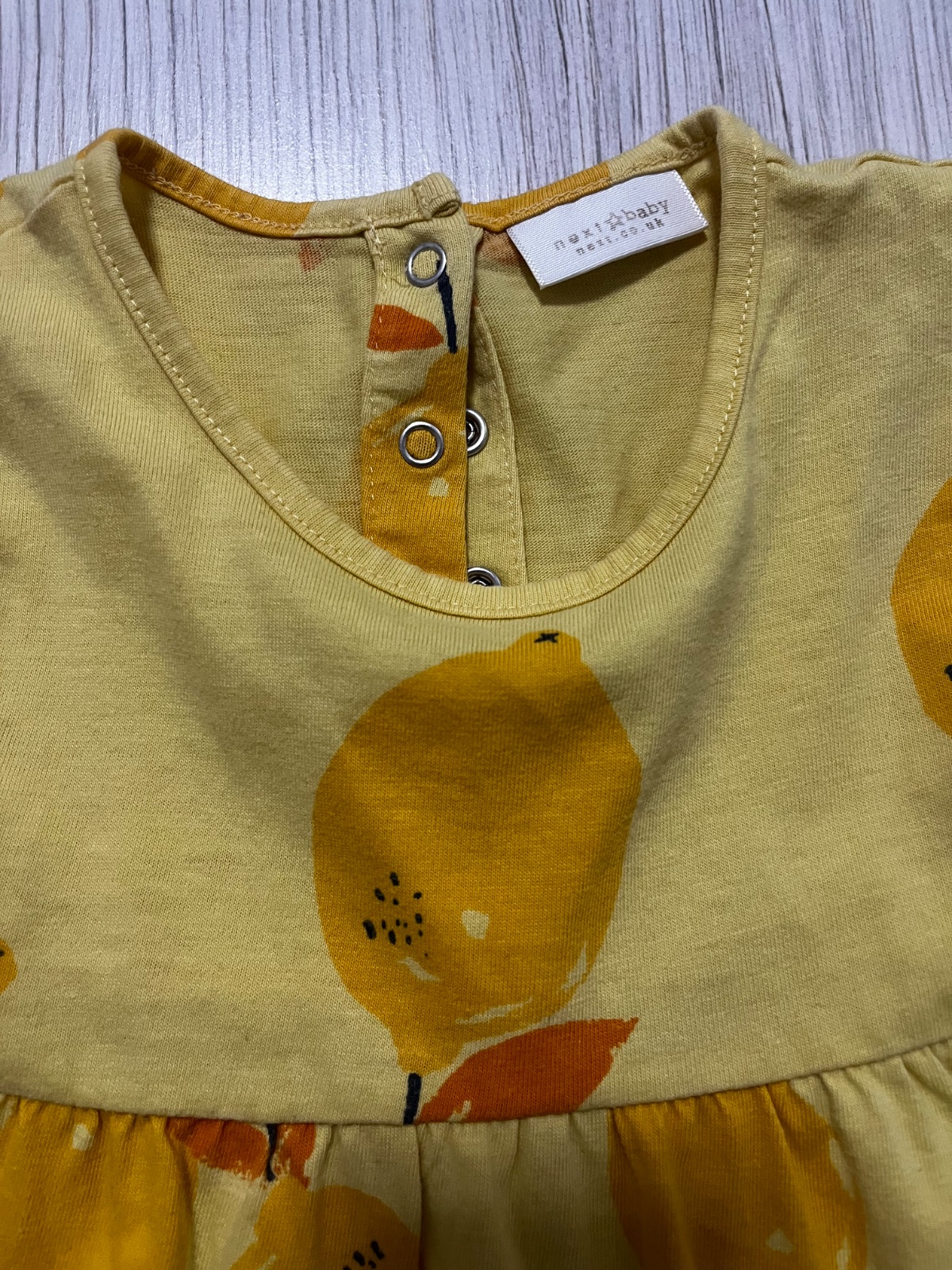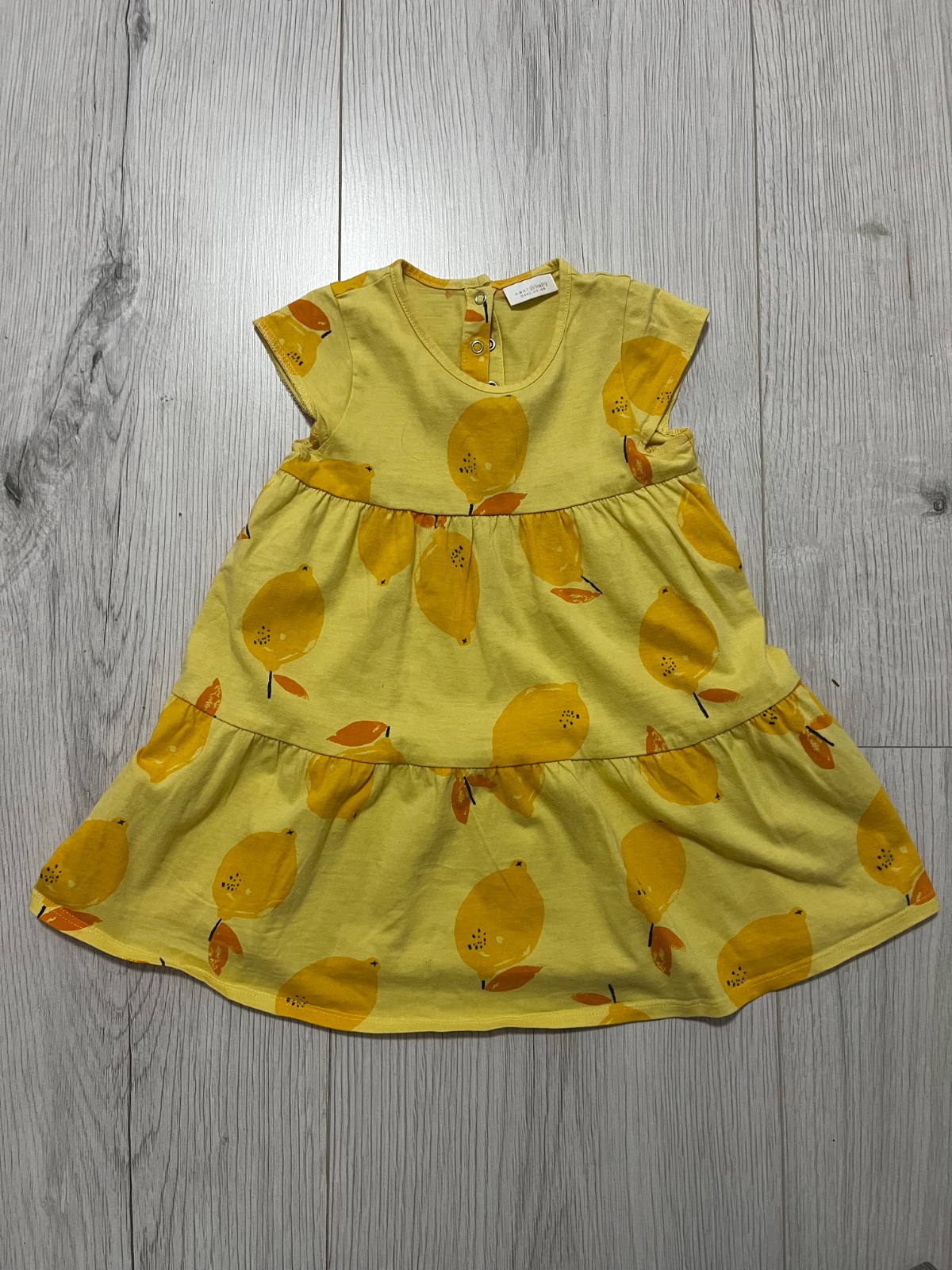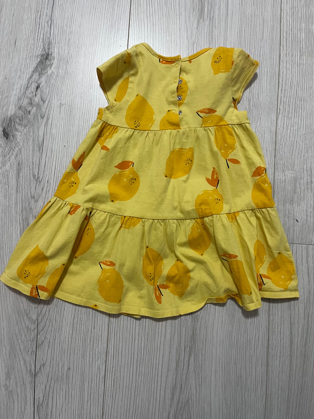 Predám vo výbornom stave žlté letné šaty so vzorom citrónov. Značka: Next, veľkosť: 92 (1,5-2 roky)