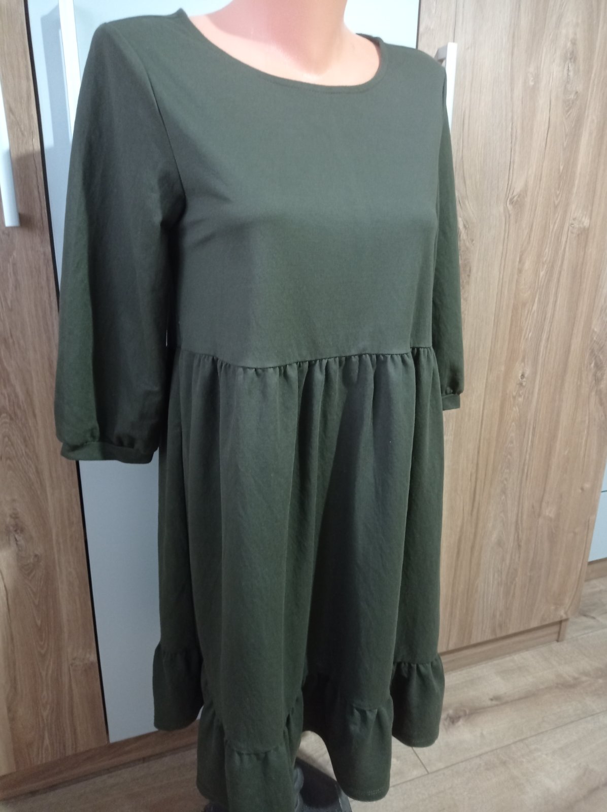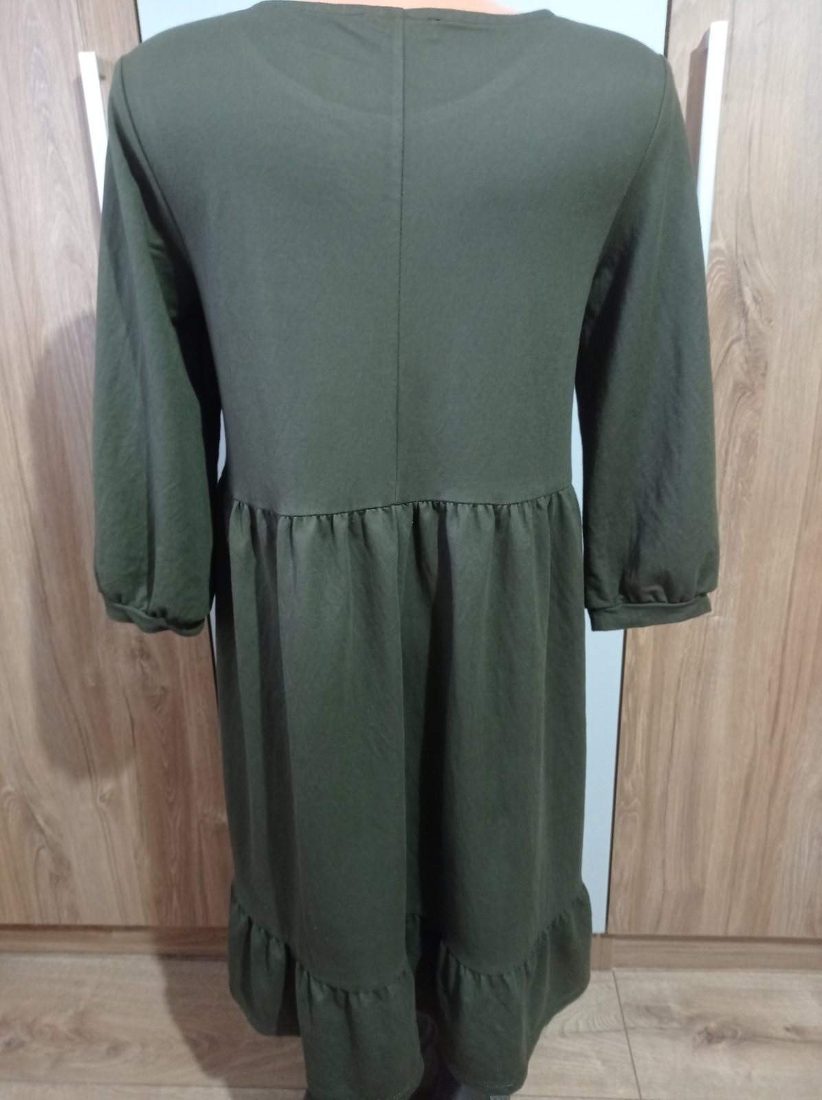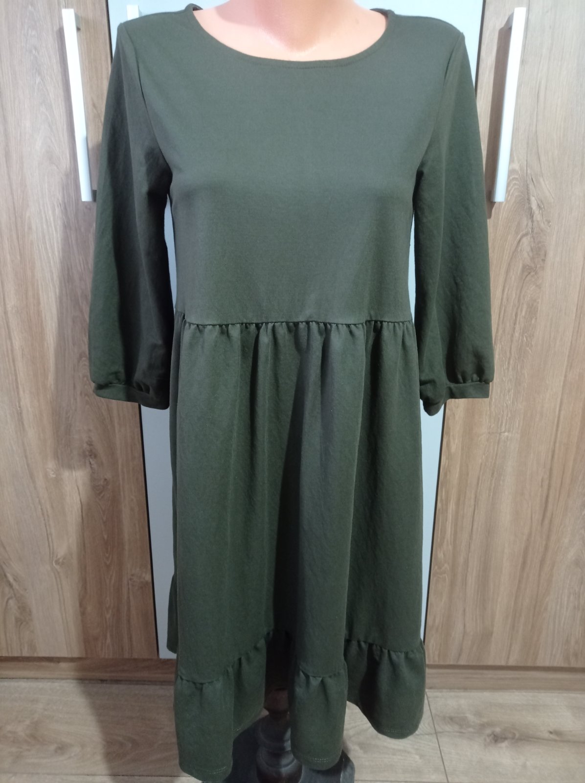 Šaty sú vo výbornom stave, z kvalitného materiálu, krásnej zelenej farby. Majú 7/8 rukáv, využiteľné po celý rok, super aj k čižmám. Veľkosť 38, šírka pod pazuchami 46 cm x 2, prispôsobia sa do cca 50 cm x 2, dĺžka 92 cm.