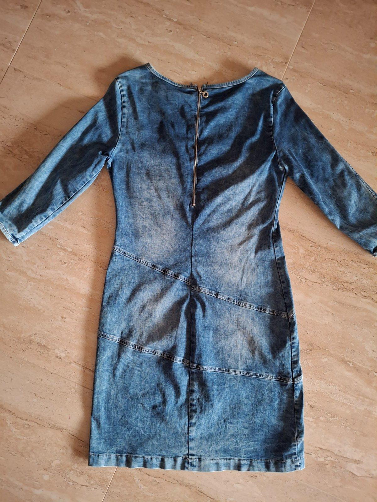 Predám rifľové šaty, veľkosť S, sú trochu elastické. Dĺžka po kolená. V cene je aj obyčajné poštovné.