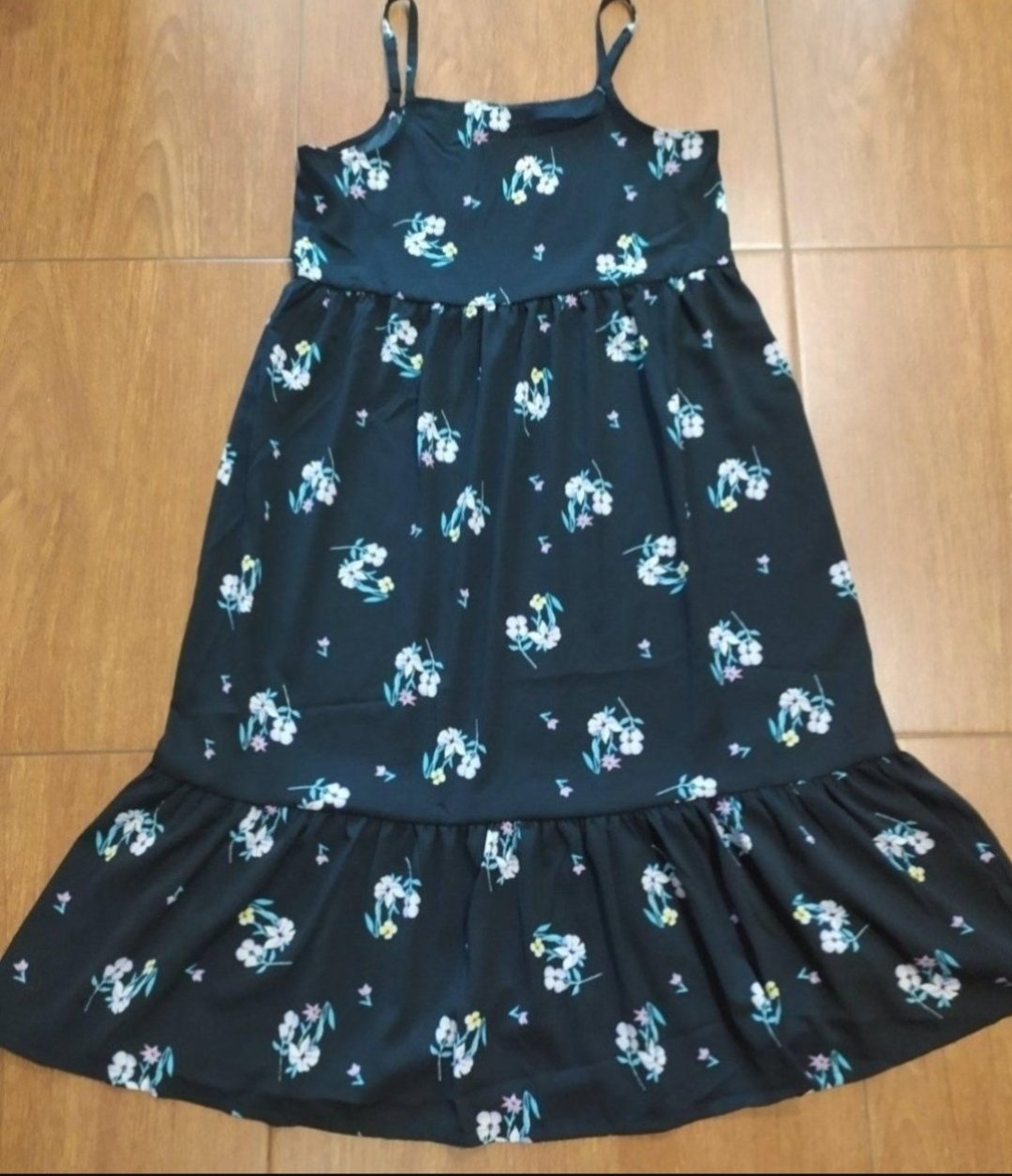 Ponúkam na predaj, krásne ľahké letné šaty pre slečnu č. 152/XXS,oblečene 3x,značka H&M, na ramienka ktoré sa dajú nastaviť,mierne elastické,v páse gumička, čierna farba s bielimy palmovimy stromam...