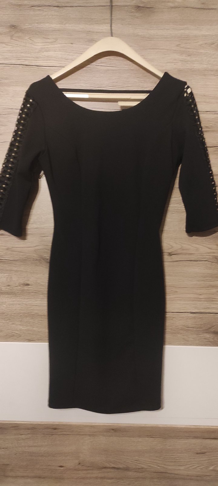 Predám čierne raz oblečené spoloč.šaty Talianskej výroby.Maju vypchavky na prsiach ktoré vedia nahradiť podprsenku,vzadu na chrbte výstrih..3/4 rukáv so vzorom dierkami.