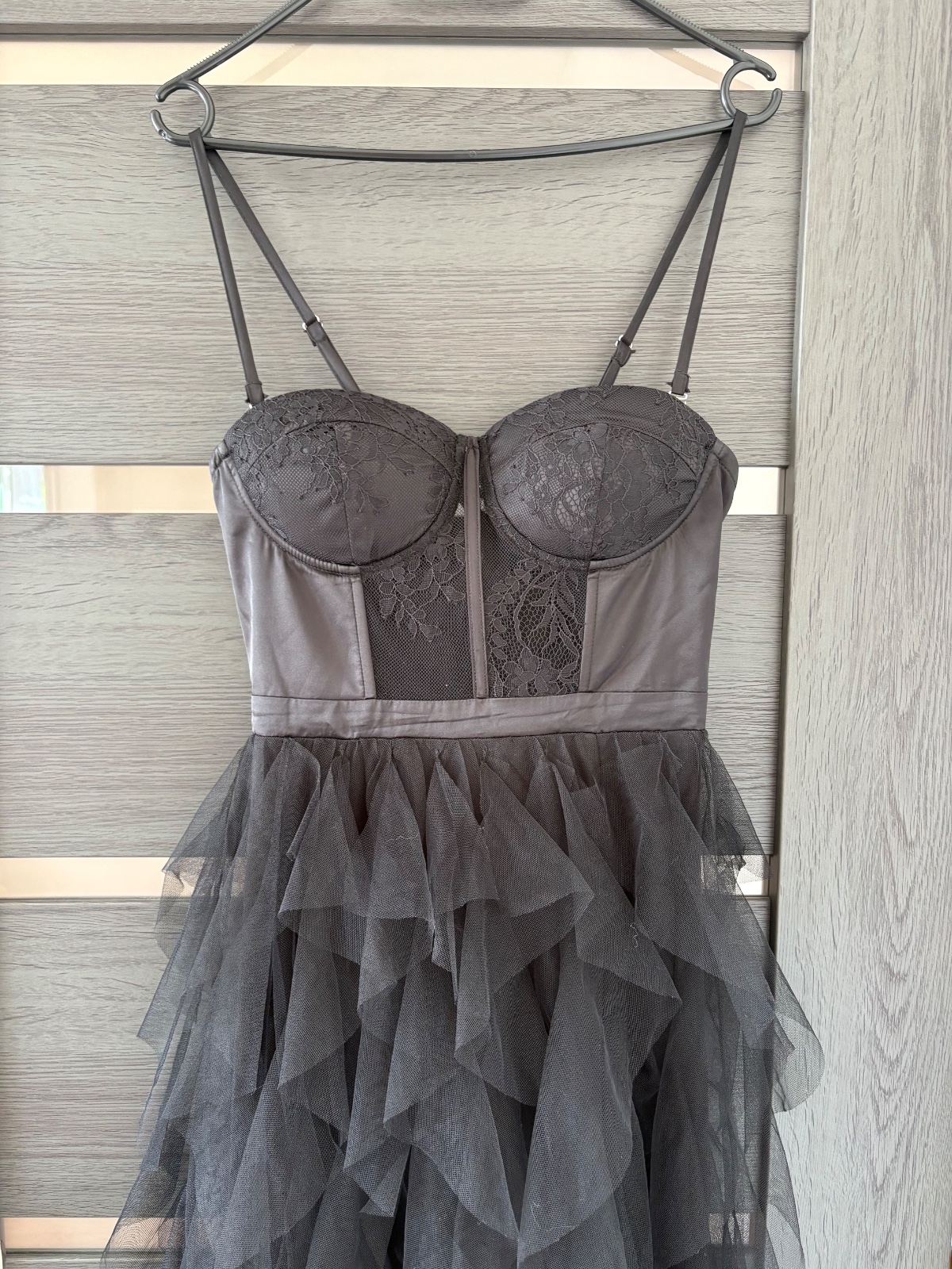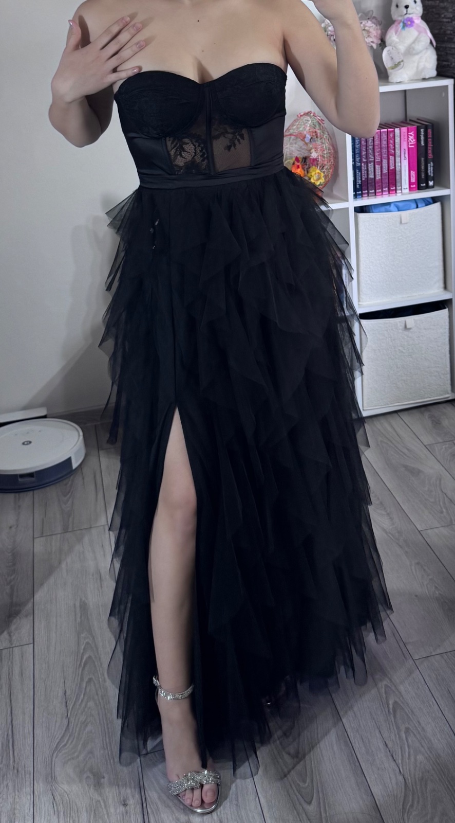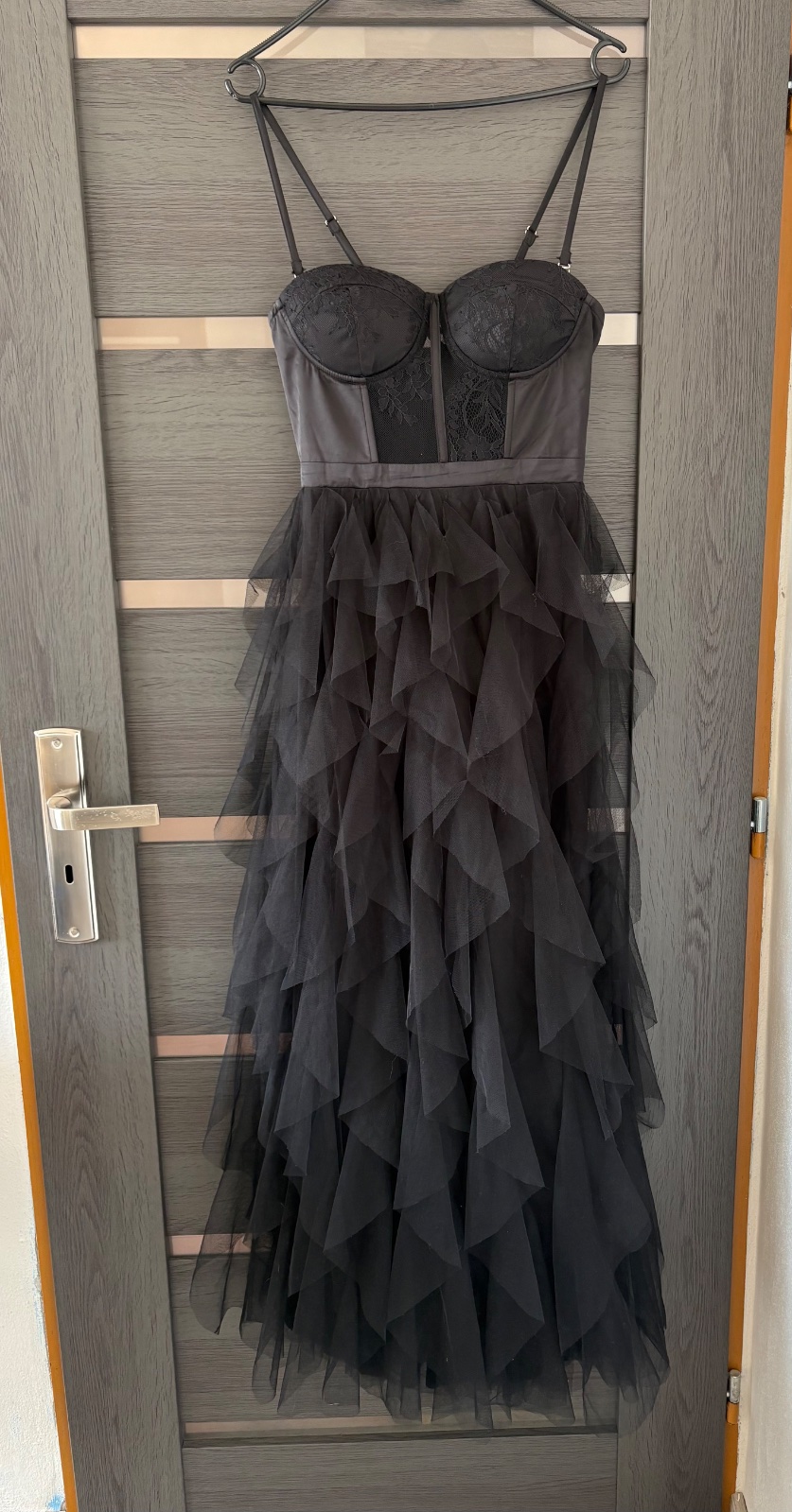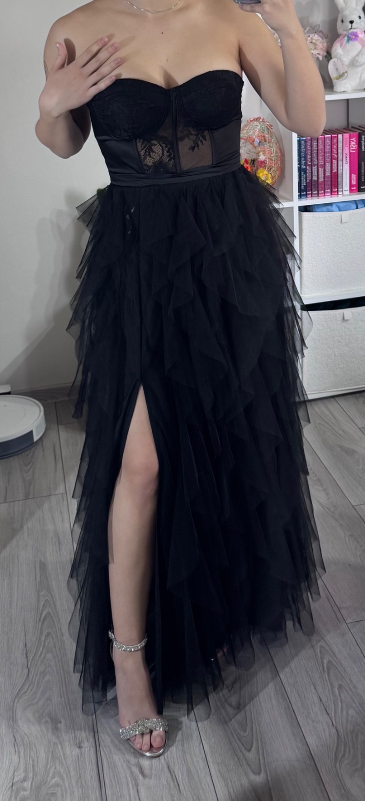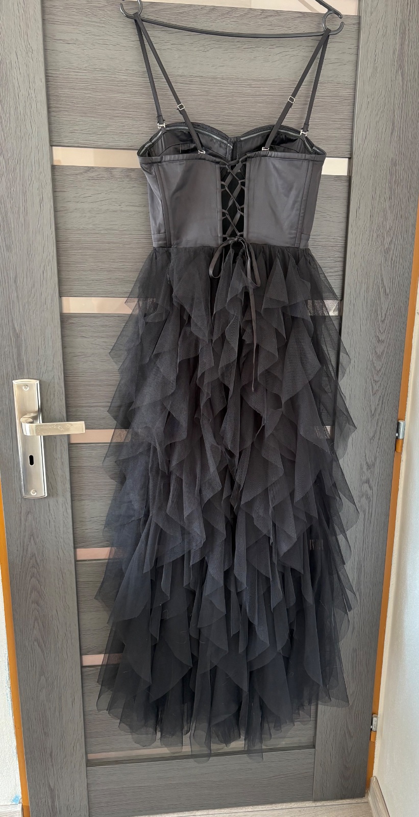 Krásne dlhé večerné šaty z tylu a krásnym živôtikom zdobeným nádhernými kryštálmi. Krásne zvýrazňujú ženské krivky – sukňa je celá vyrobená z tylu. Šaty majú vpredu všité košíčky, vďaka čomu nie je potrebná podprsenka. Sukňa je vyrobená z niekoľkých vrstiev ľahkého tylu. Tieto krásne, jemné šaty majú odhalené ramená a zaväzovanie vzadu pre dokonalé strihanie. Tieto korzetové šaty majú rozšírenú tylovú sukňu. Tylové volániky a rozparok na ľavej strane dodávajú šatám charakter. Sú ideálnou voľbou pre všetky druhy špeciálnych udalostíÍ