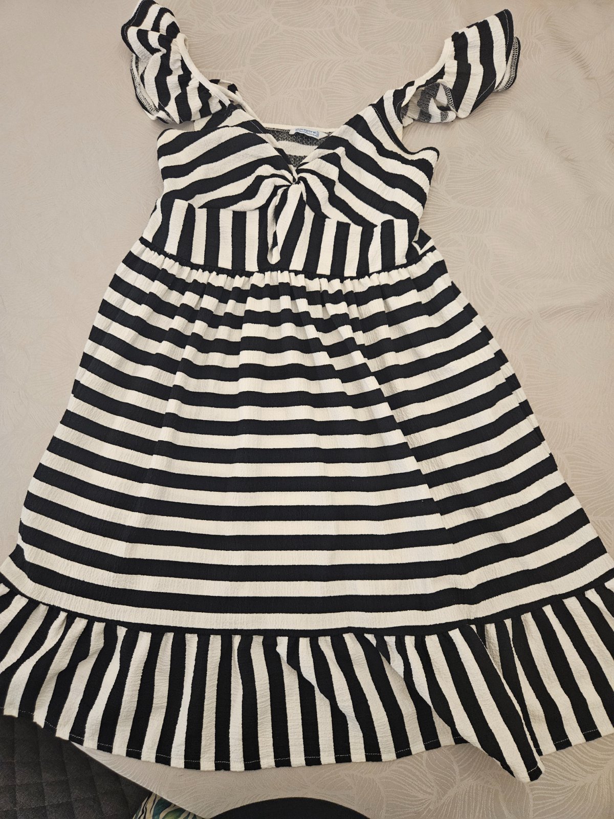 Úžasné šatky po mojej dcérke, mala oblečené iba 2 krát, na rodinnej oslave... nemaju ziadne znamky nosenia..povodna cena okolo 60€...uz su nam male, tak posuvame dalej..velkost je pisana 158, ale j...