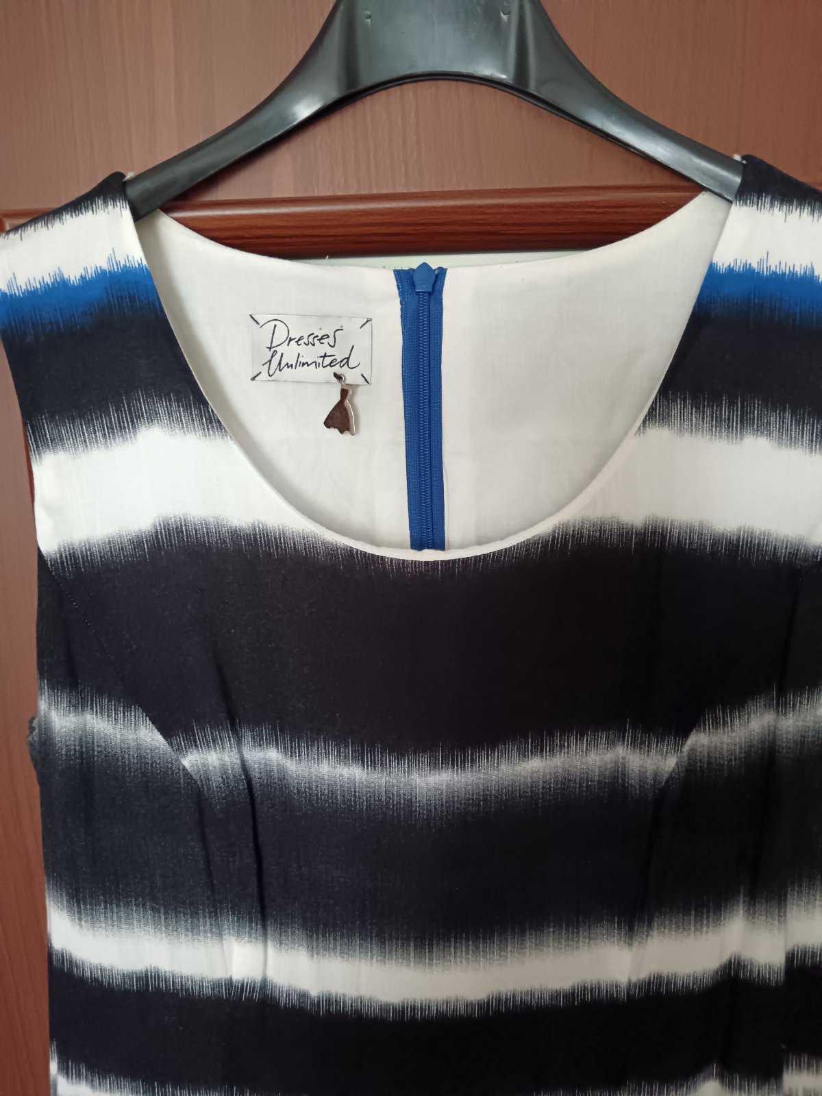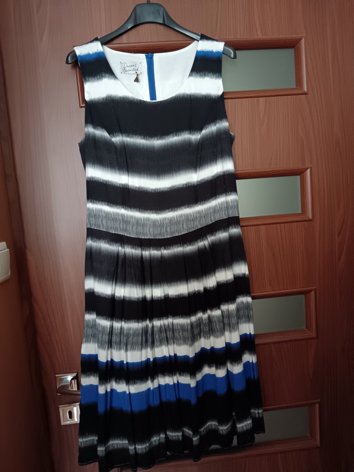 Krásne, pohodlné šaty bez rukávov. Vzadu na zips. Mäkká poddajná látka. Veľkosť 38. Podšité jemnou látkou, nepresvitajú.