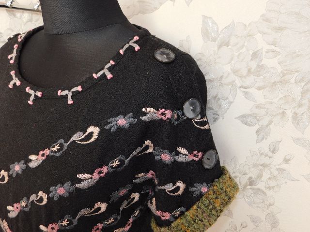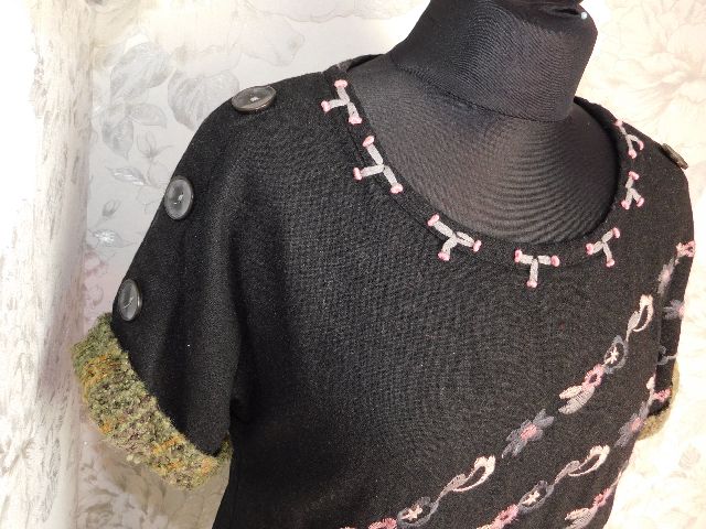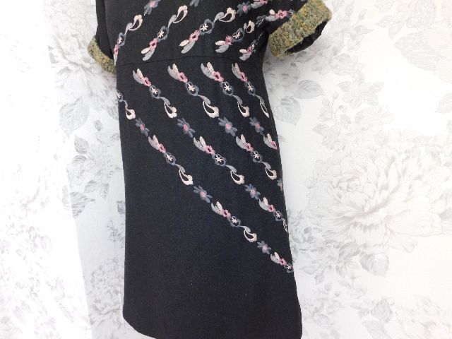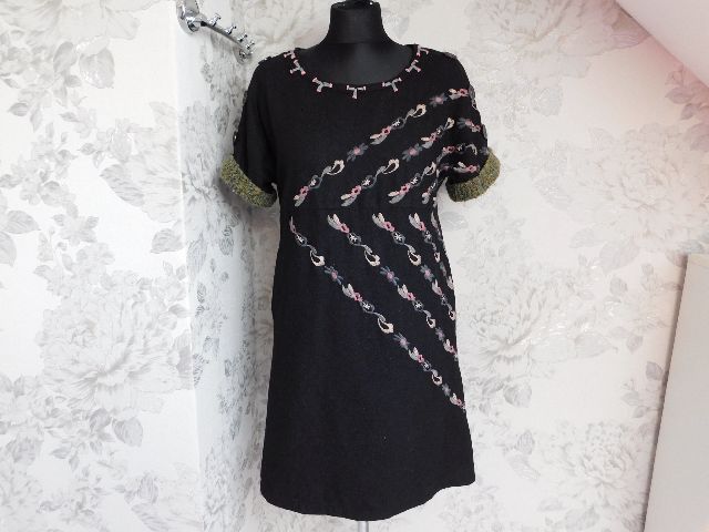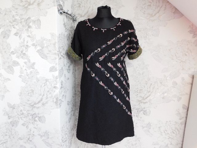 Luxusne pekne šaty,tmavošedej farby,zdobene vyšivkou,s podsivkou,2 bočne vrecka.50%akryl,50%polyester.super stav. PC 169€. j49