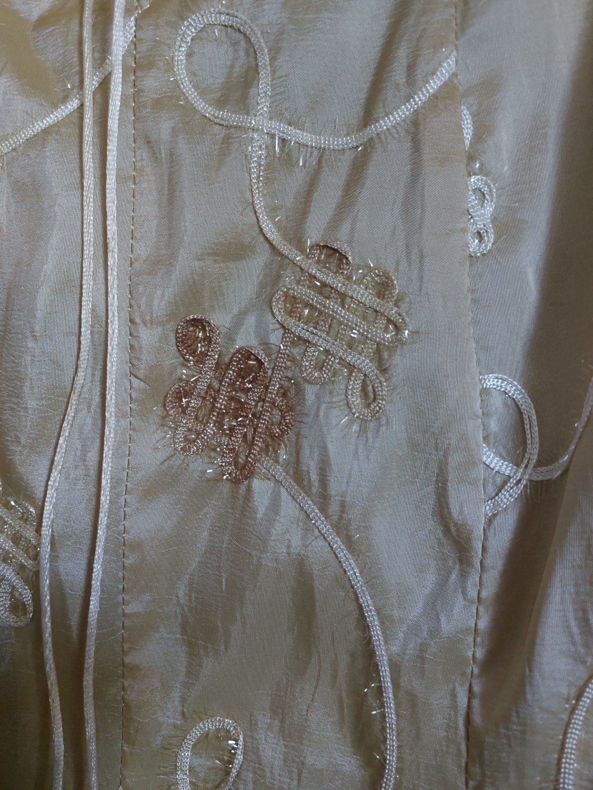 Všetko nafotene, bez poškodenia, vzadu šnurovanie, lesklé, zlate, výšivka po celych šatách