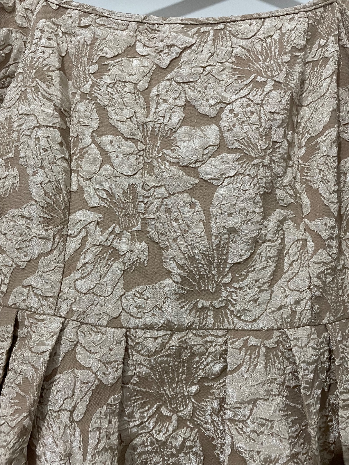 Brokátové šaty s výstrihom a rozparkom bežové