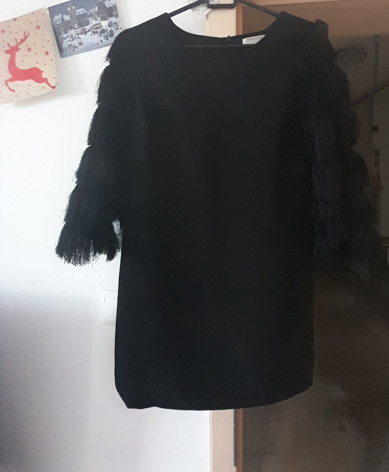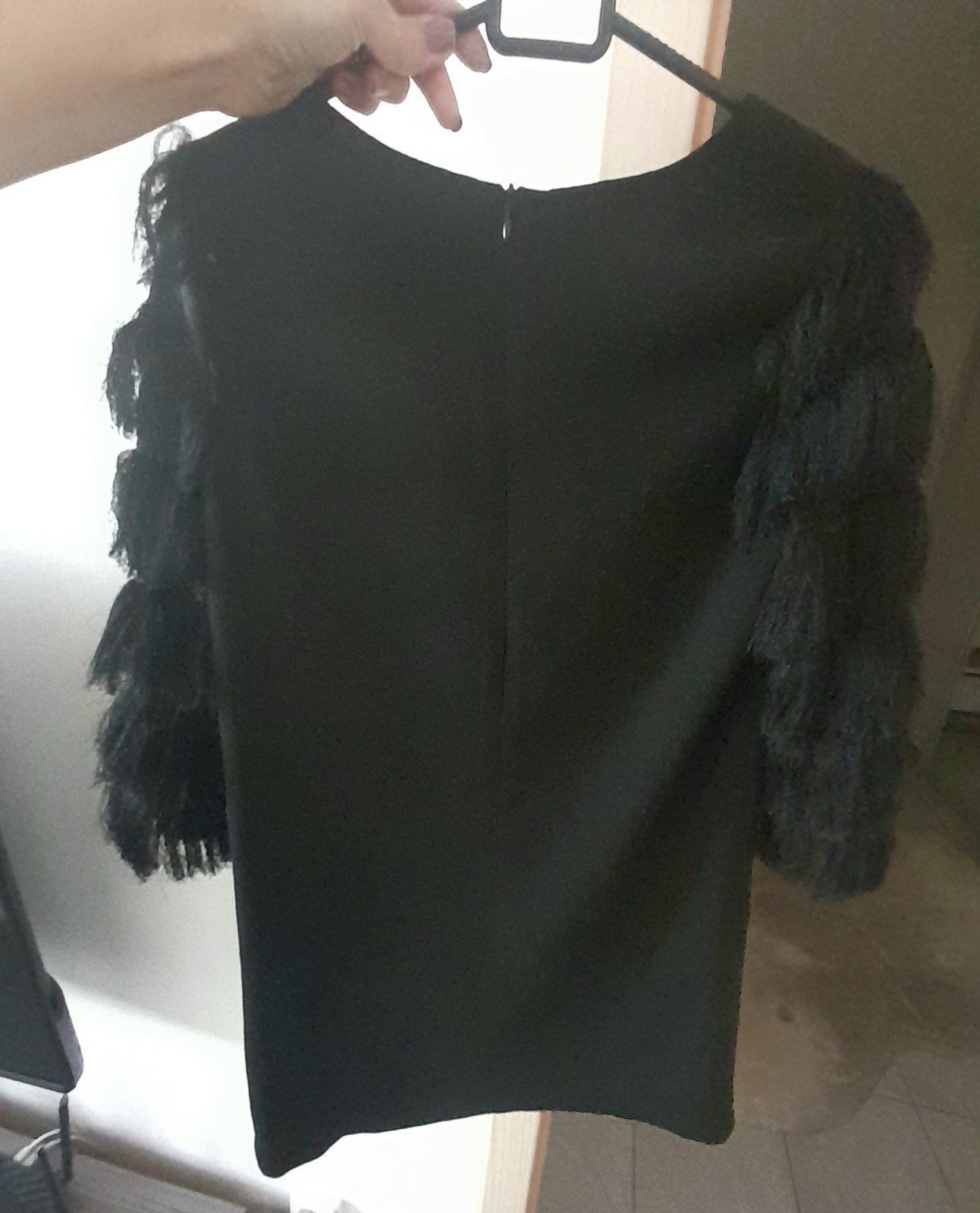 Predám elegantné A-čkové šaty veľ.S Oblečené 1x-ako nové Materiál-ľahký šifón+podšívka, 3/4 rukáv z troch vrstiev Rozmery: celková dĺžka-87cm šírka plecia-35 cm dĺž...