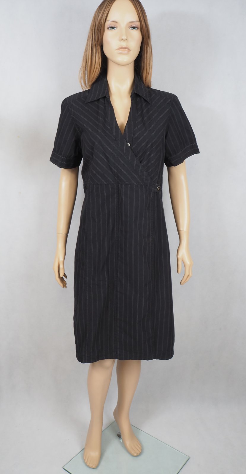 Kvalitné letné šaty čiernej farby s jemným pásikom, materiál 67% bavlna, 33% nylon, super stav.