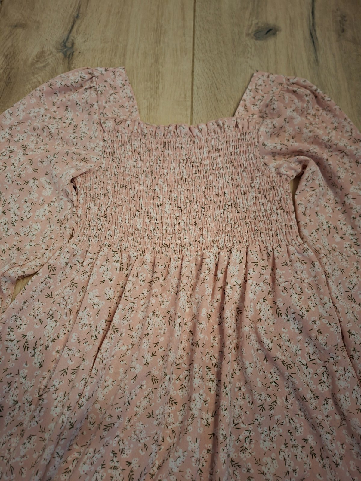 Krasne saty s drobnymi kvetinkami, mam podobny vzor aj vo svetlomodrej farbe saty s kratkym rukavom no pri modrych je pevnejsi material. Tieto su tenke. Dlzka 89cm, tiez maju riasenie na vrchnej casti.