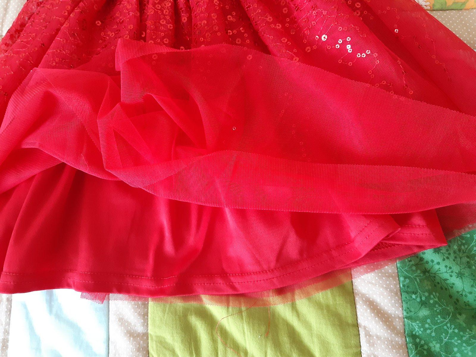 Flitrove saty s dvojitou sifonovou suknou so spodnickou. Elasticke so zapinanim na gombik na chrbte.