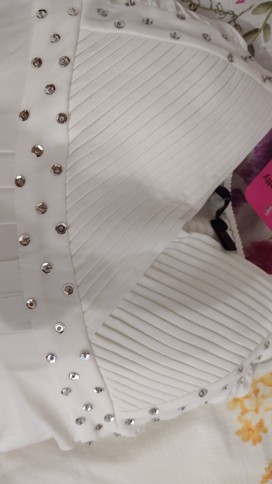 super stav 1x oblečené farba biela káva podajná látka na korzete sú vyšívané kvety vzadu má gombíky a viaže sa okolo krku. Sukňa pás na gombik a na boku zips. miery korzet prsia 41 dĺžka merane s p...
