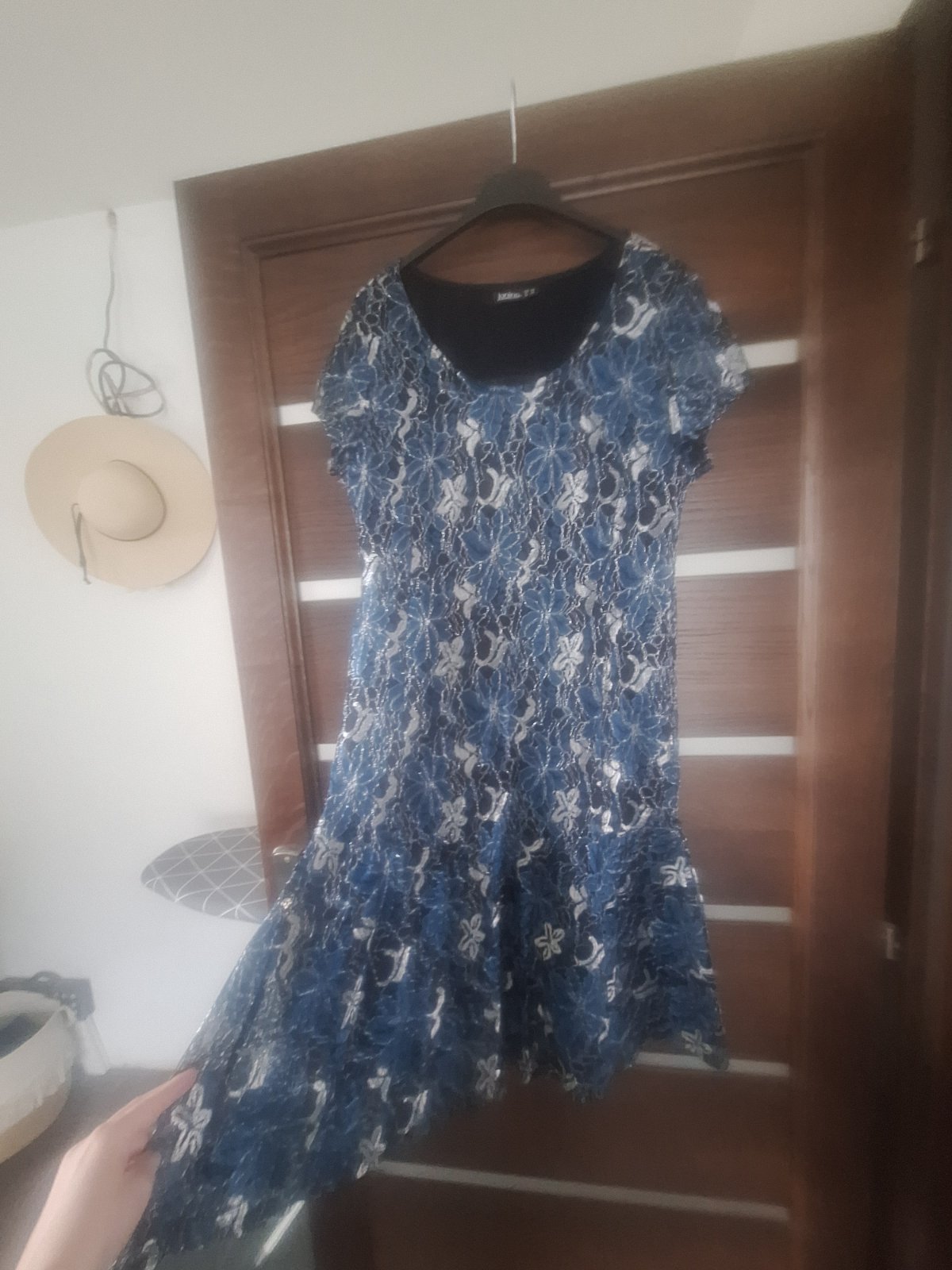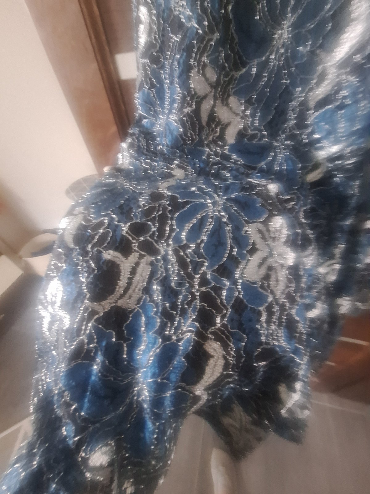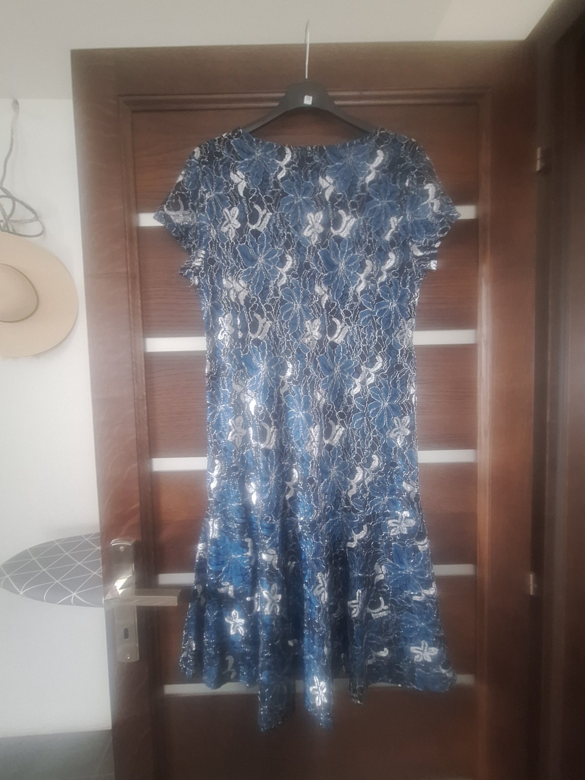 Predam, bez poskodení, vhodne na oslavu, ci svadbu. Elasticky material, podsite. Farba tmavomodra/cierna/strieborna. Cena + posta.