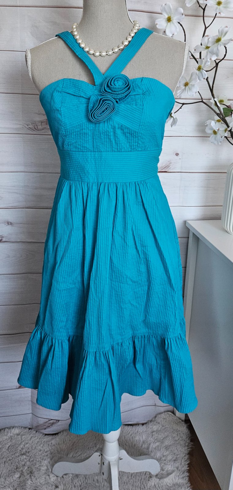 Krásne šatičky ,pod šatami spodnička ,prsia - 37x2cm,natiahne sa do 42x2cm, pás - 36x2,dĺžka - 78cm.