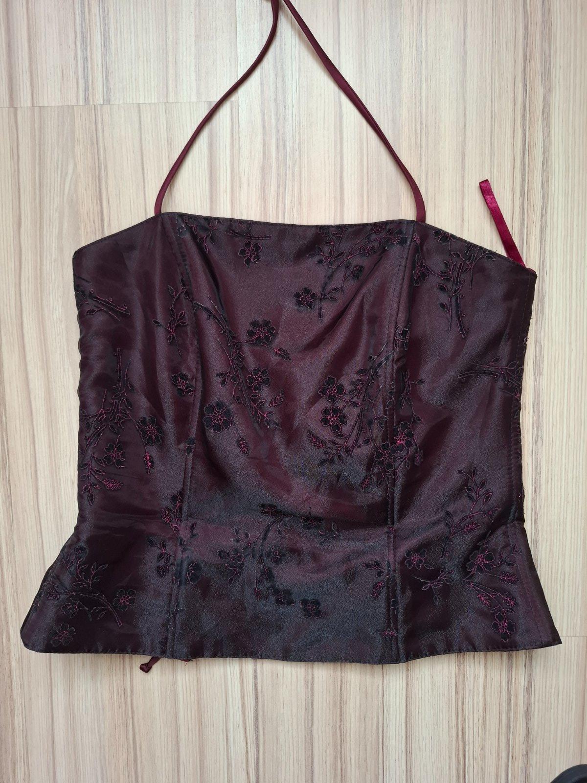 Spoločenské šaty, korzet + sukňa, bordová farba. Velkost 36, korzet je útly, možno aj 34.