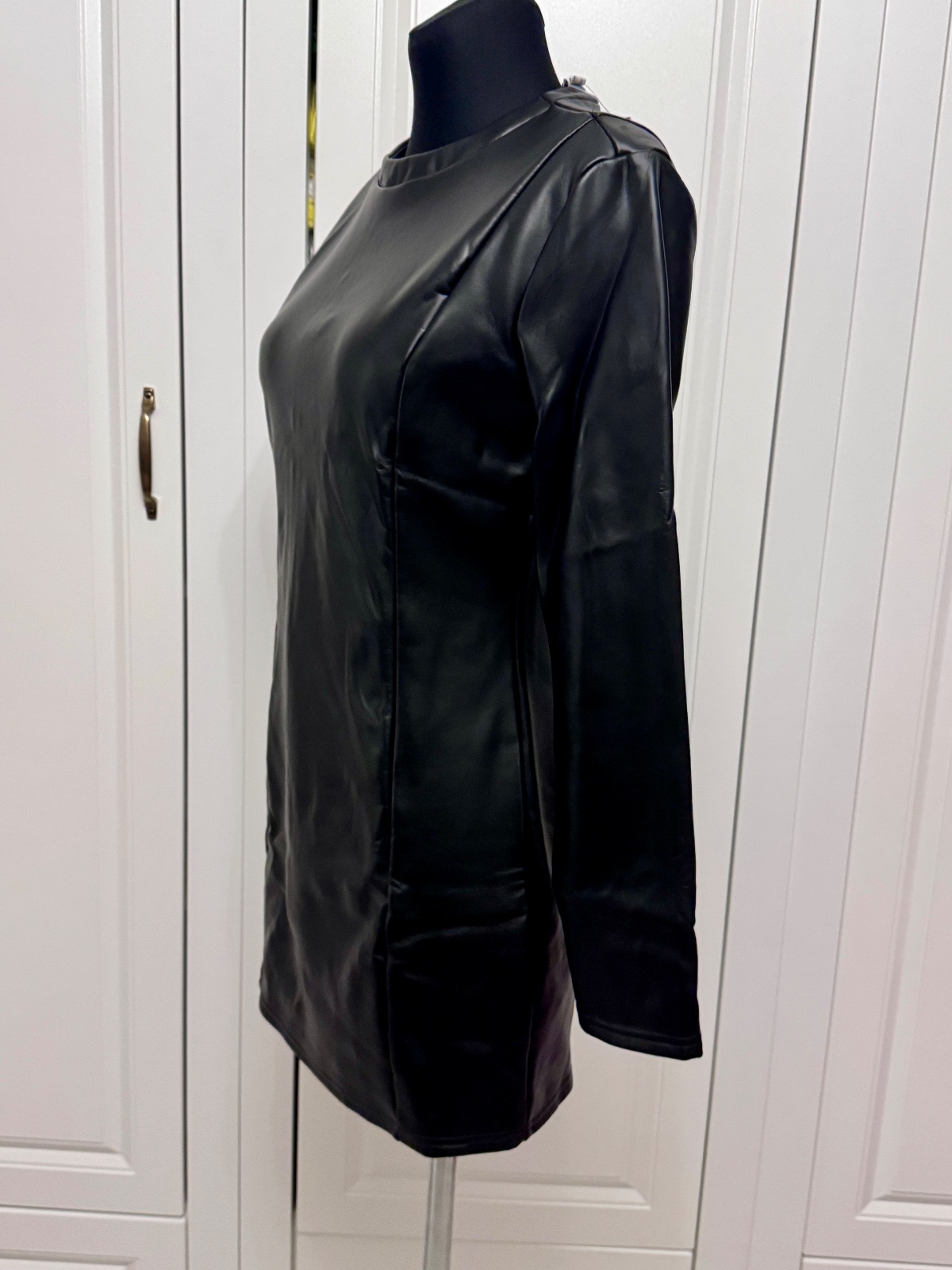 Koženkove šaty sú nové s visačkou , nemala som ich ani raz oblečené , veľkosť M, vzadu zapínanie na zips