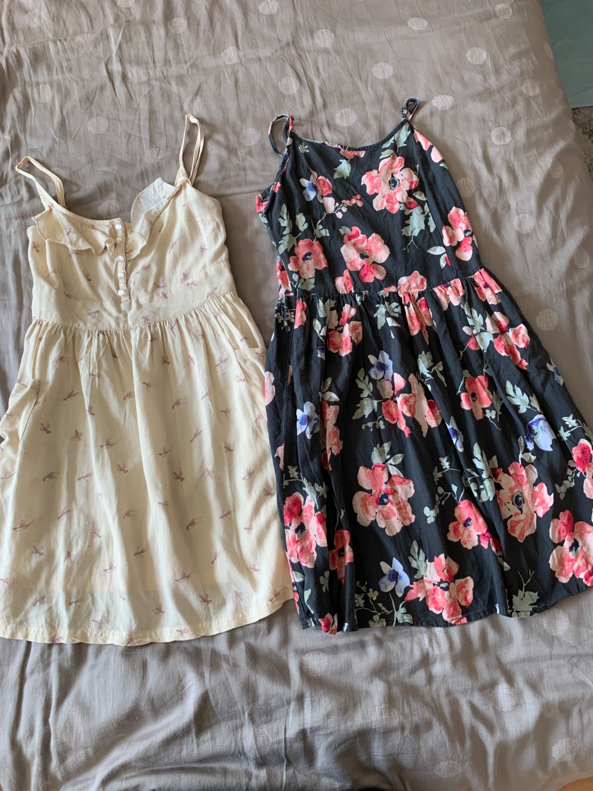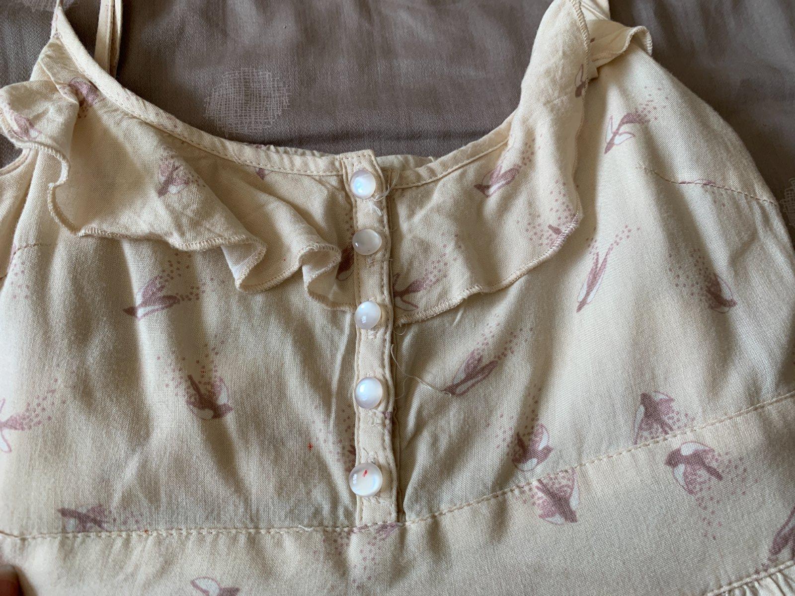 Letné šaty veľkosť 134/140. Kvetované drobné vypáranie - viď. foto a tie bledé majú drobné červené fliačky. Stále podľa mňa pekné. Cena a predaj spolu.