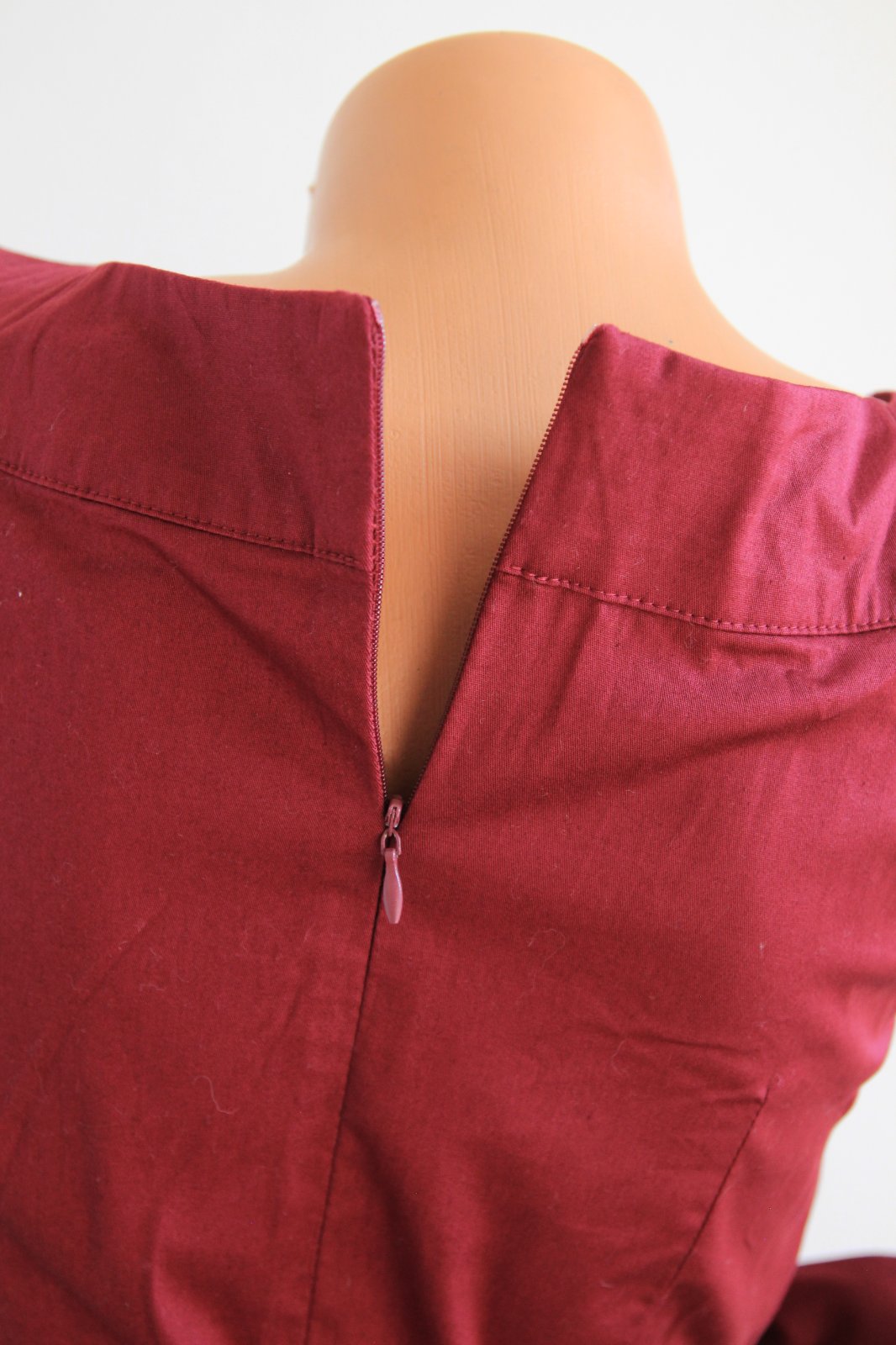 Bavlnené áčkové šaty vo vintage štýle s opaskom v krásnej vínovej farbe. Veľkosť je S, Na chrbte sa zapínajú na zips. Top stav. Materiál je 95% bavlna a 5%spandex.