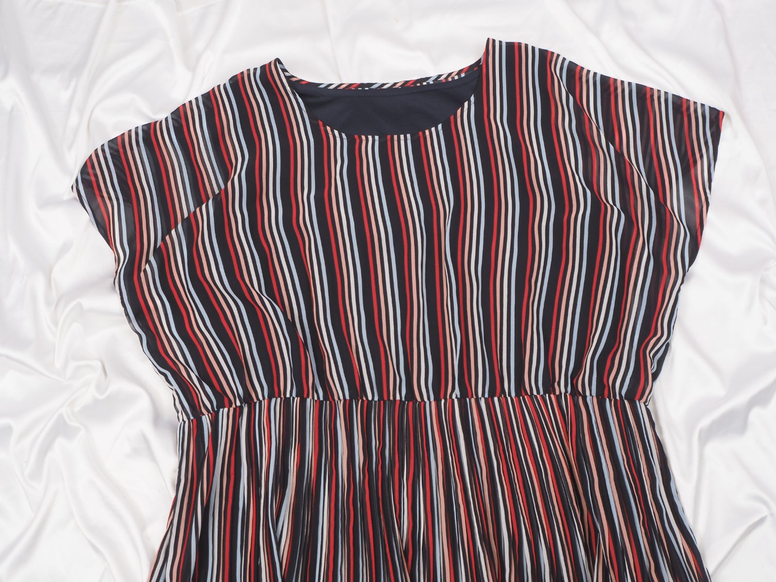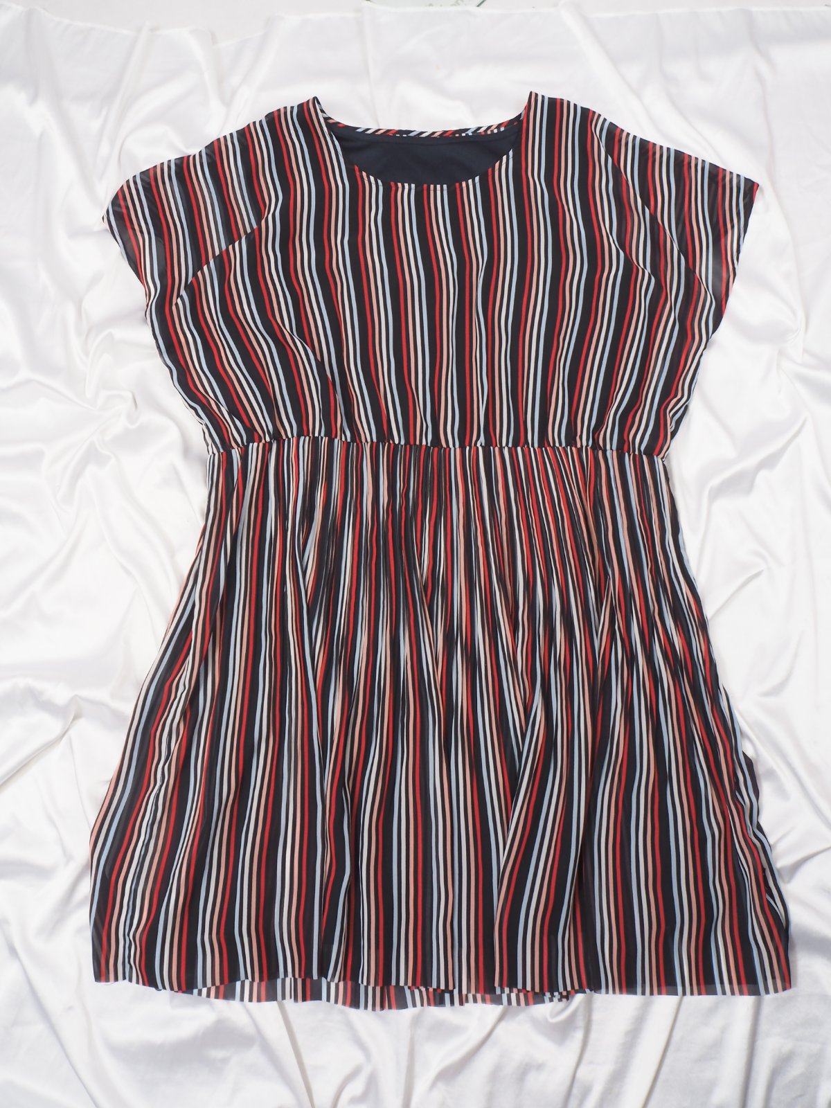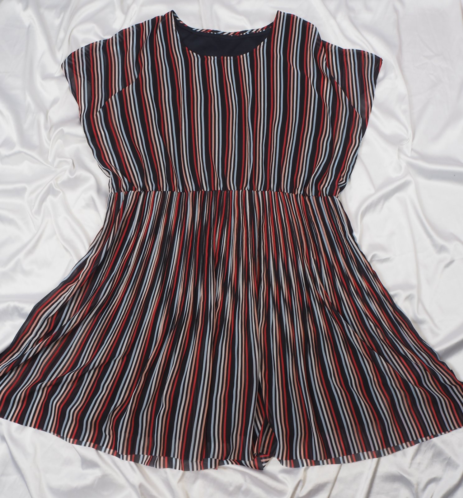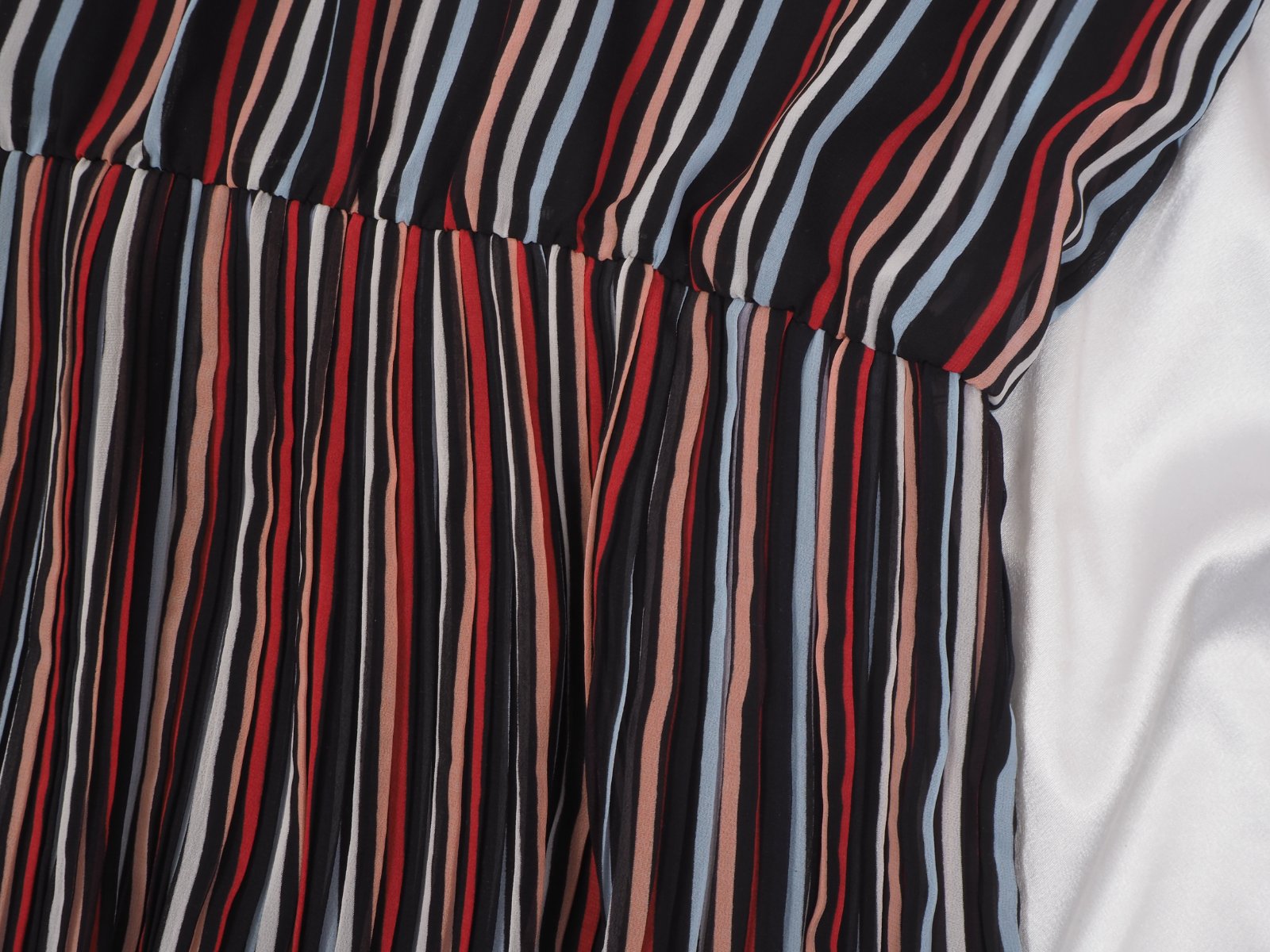 Kvalitné letné šaty pásikované, podšité, v páse jemná gumka, časť pod gumkou plisovaná, materiál 100% polyester, super stav.