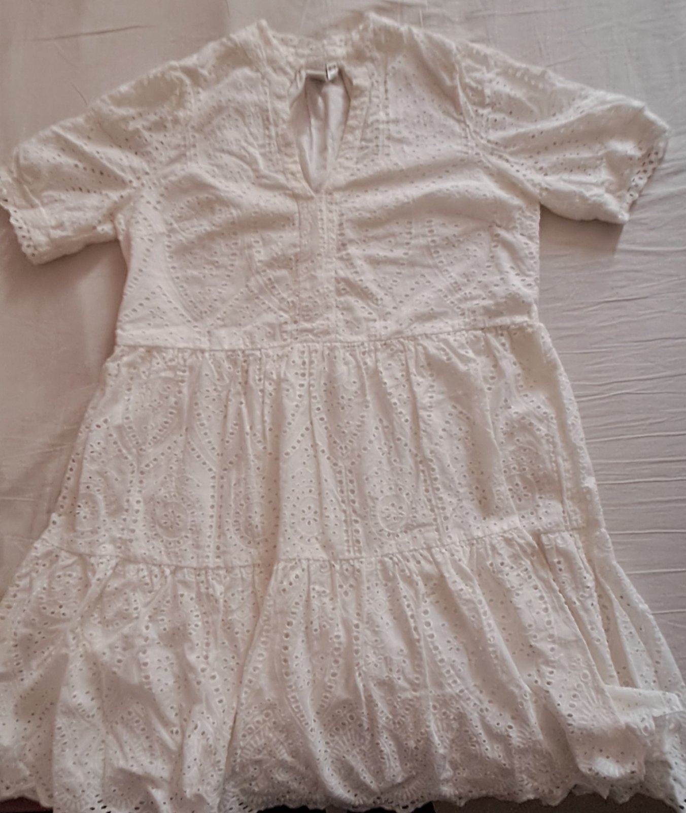 Predám elegantné biele šaty dĺžky 91 cm, niečo medzi mini a midi. Raz oblečené, zn. IRL. Na jednej fotke sa zdajú priesvitne, ale to nie sú, je to asi svetlom cez okno.