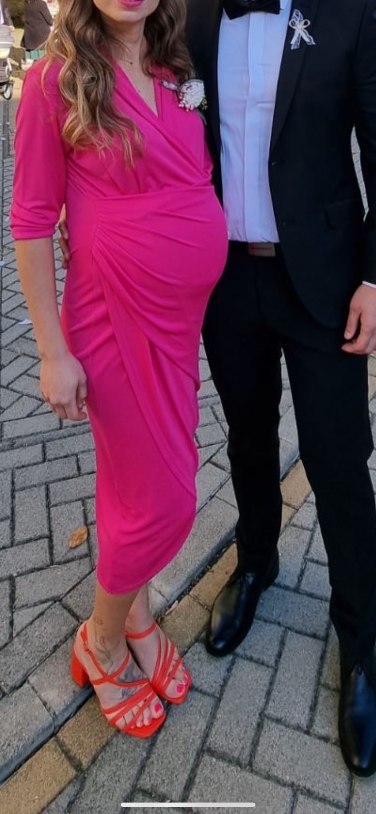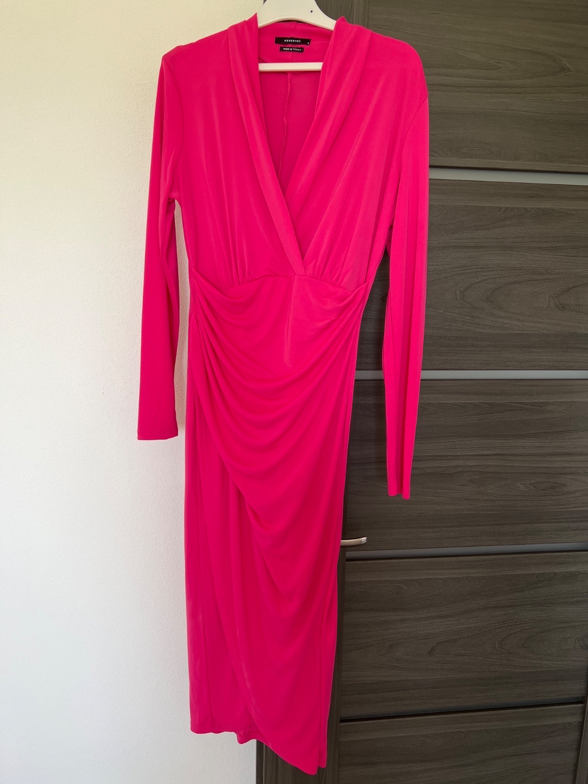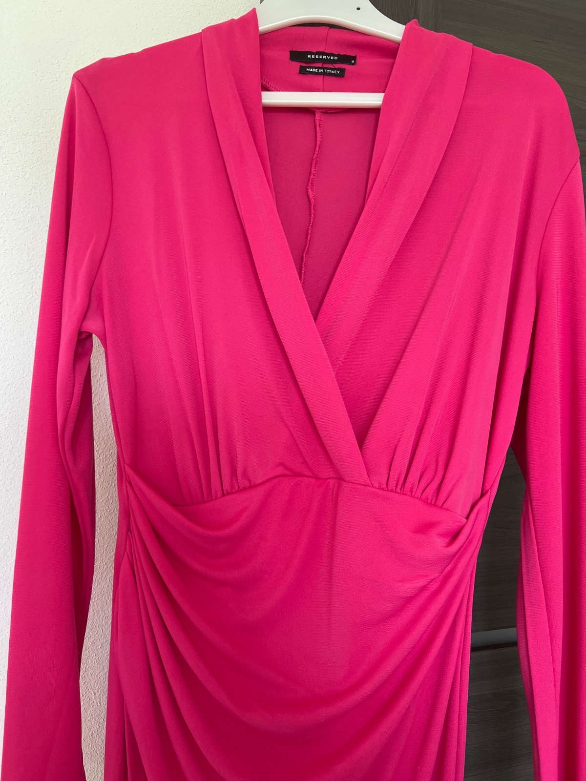 krásne ľahké,len 1x oblečené,PC 34€,zn.Reserved,krásna ružová farba,dlhý rukáv,veľkosť S,ja som ich mala oblečené v tehotenstve na svadbe,keďže sú elastické,na bežné nosenie aj na spoločenské,materiál 100% polyester,dĺžka od pleca 124 cm,(ja meriam 165 cm),dĺžka rukáva od pleca 59 cm,šírka vkľude cez prsia 2x51 cm,cena 11€+pošta