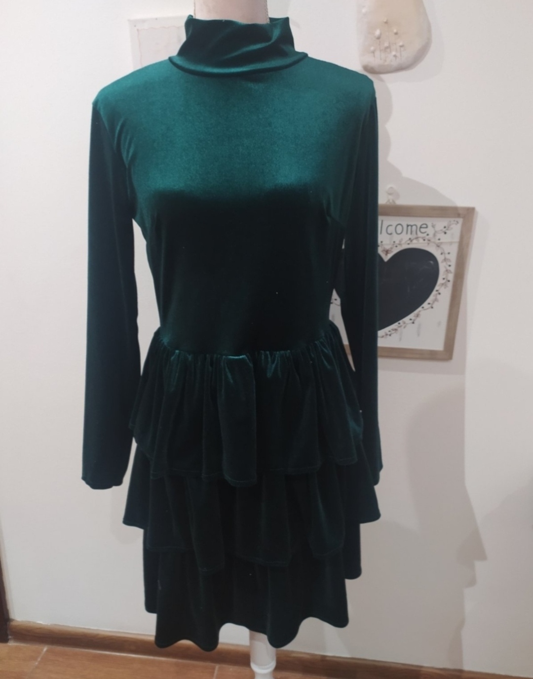 Nádherné zamatové šaty,boli použité 1x,veľ uvedená L ,zdajú sa mi menšie ,viď miery, elastické