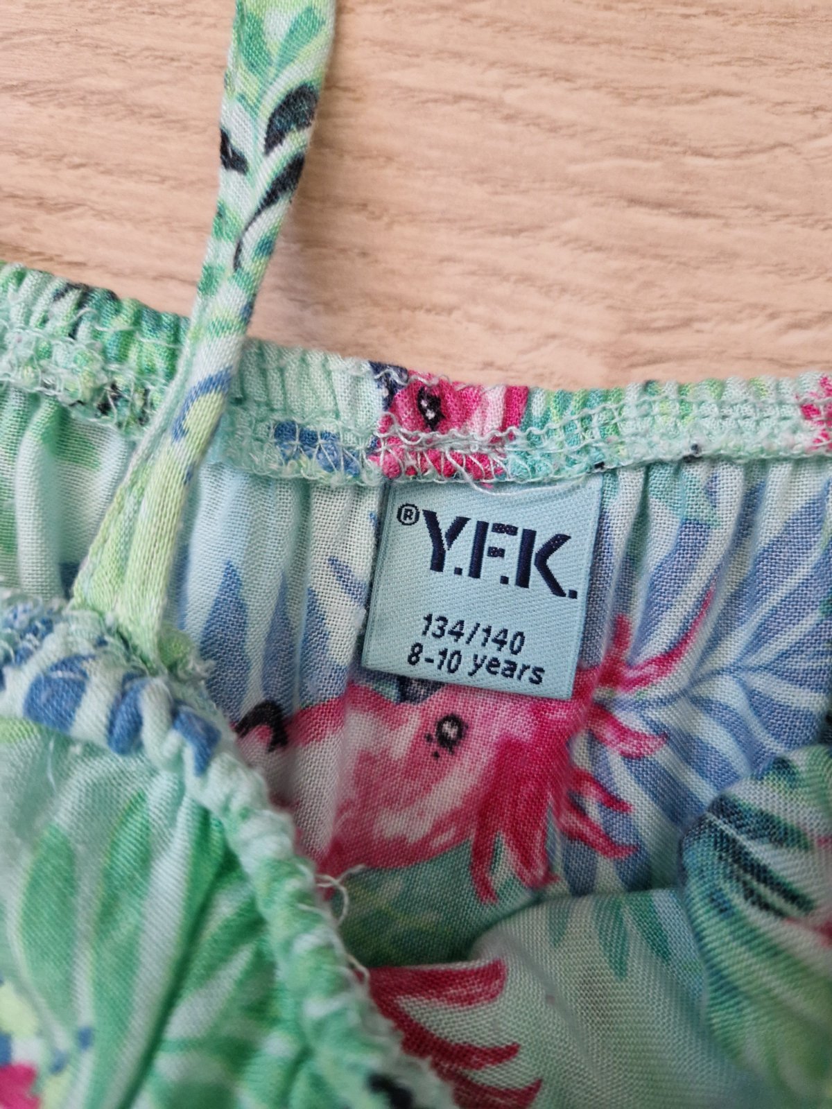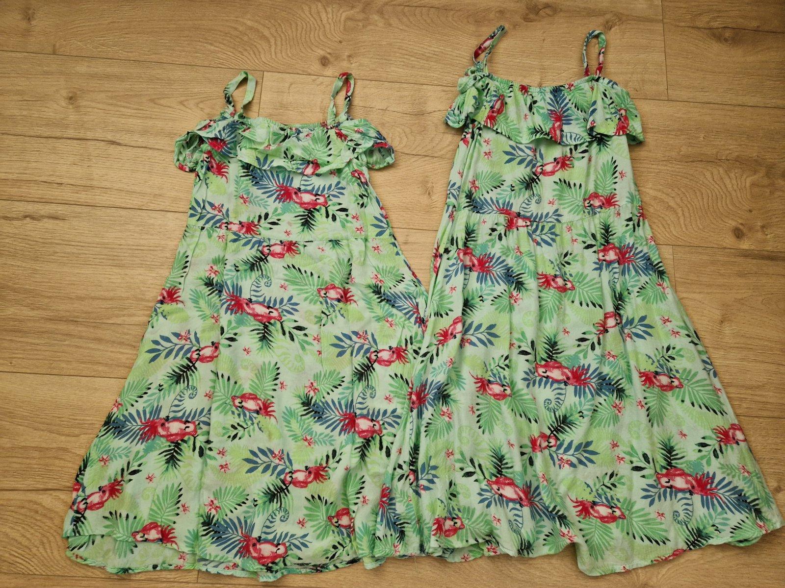 Zelené ľahucke šaty s papagajmi, 128. Dĺžka 76cm. Mam aj väčší pre sestričku.134/140.