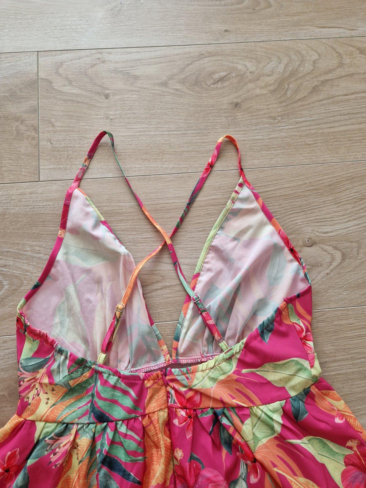 Dlhé letné dámske šaty na ramienka. Ramienka sa dajú stiahnuť a nastaviť dĺžka.