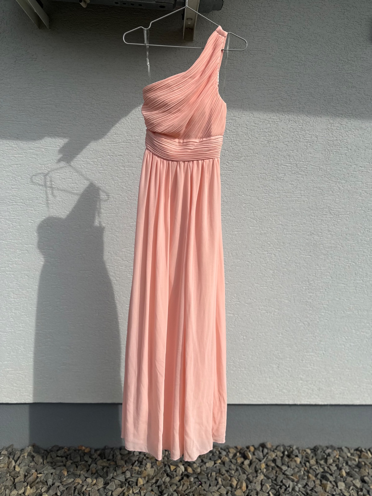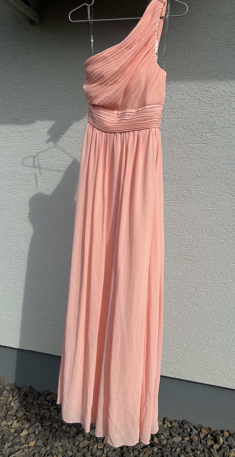 Predám spoločenské šaty, ktoré som mala na sebe len raz na svojej svadbe. Sú losovej farby, skracovane na moju výšku 163 plus opatok 6 cm. Veľkosť M.