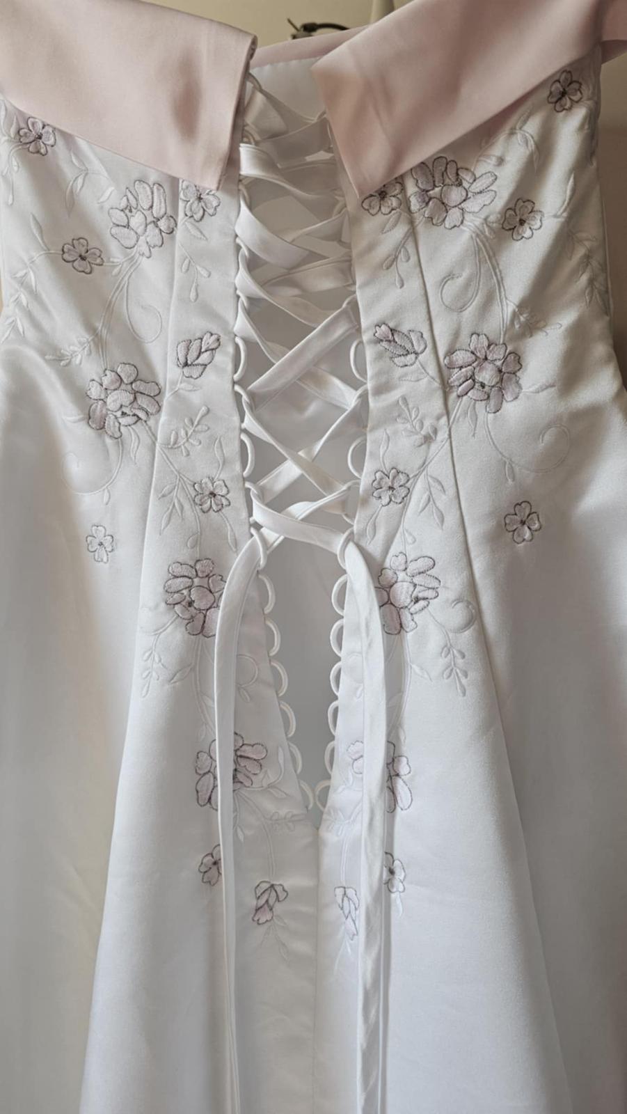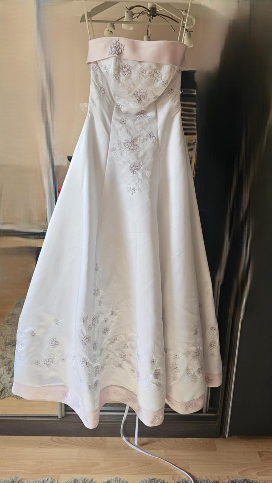 nádherné romantické svadobné šaty. cena oveľa vyššia. majú jedinú chybu , chýba vzadu podsádka ked sú úplne zaviazané neni vidieť alebo u krajčírky dať došiť. velkosť od 36 - 42