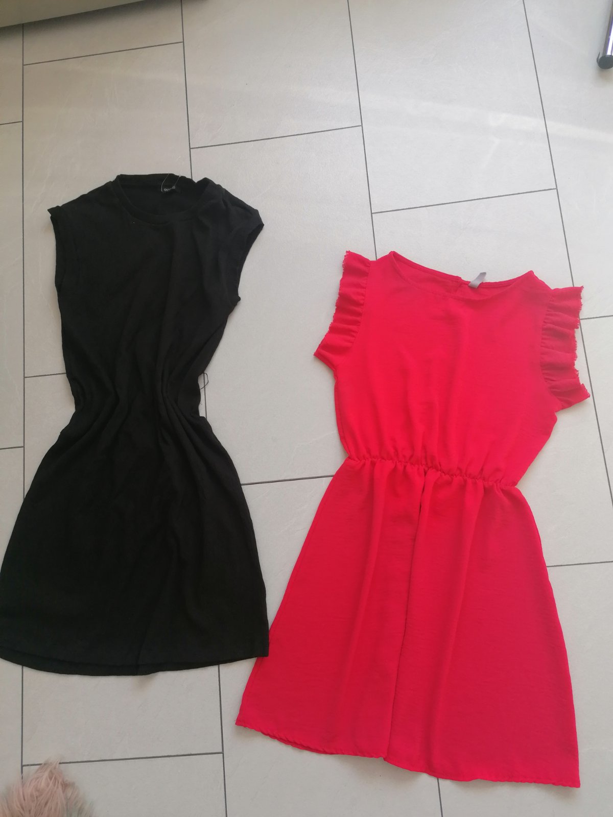 Predam 2x letné saty cervene maju volanikove rukavy krásne sedia, čierne majú opasok musím ho pohľadať predaj a cena iba spolu foto na postave nefotim